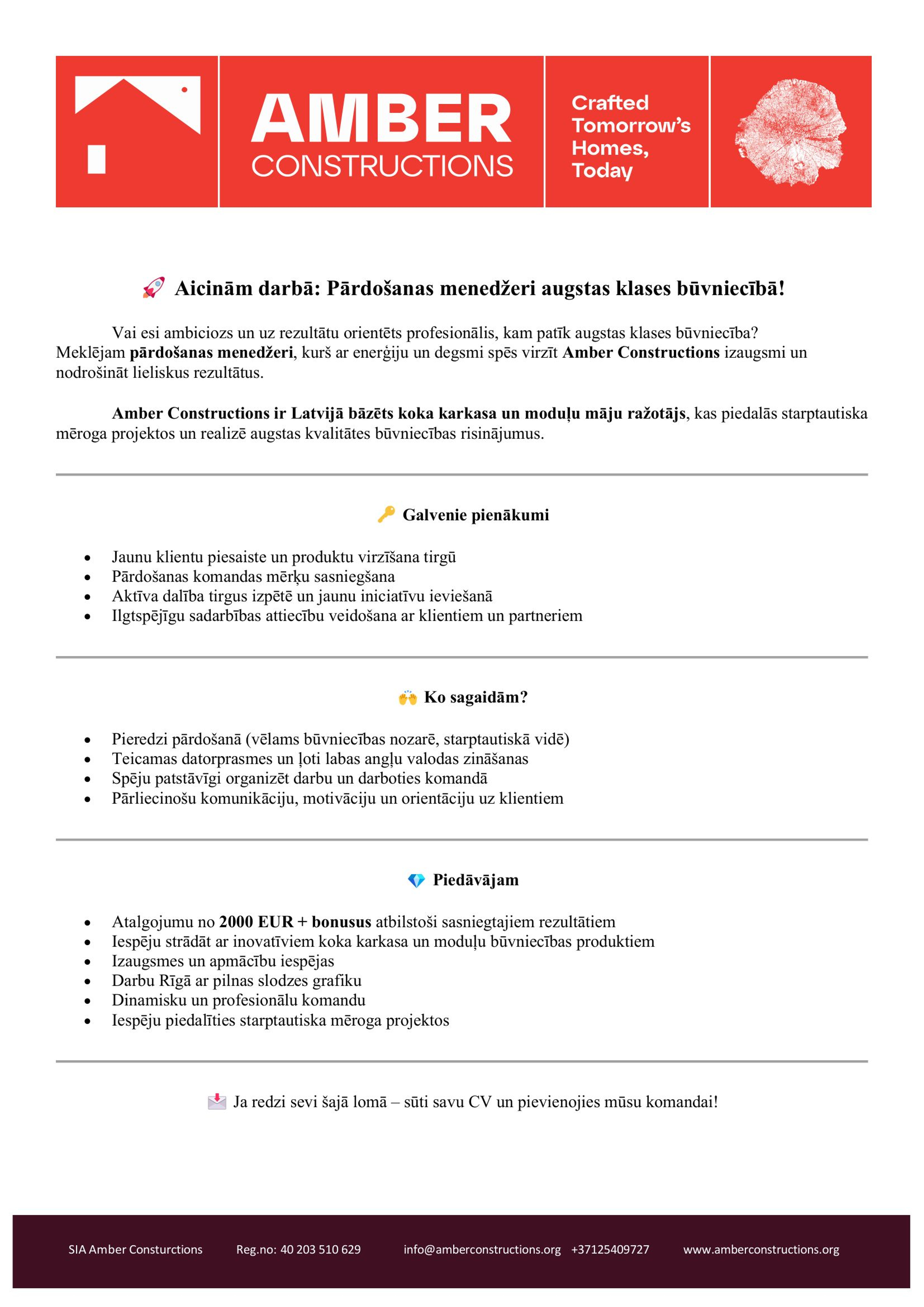 Amber Constructions ir Latvijā bāzēts koka karkasa un moduļu māju ražotājs, kas piedalās starptautiska mēroga projektos un realizē augstas kvalitātes būvniecības risinājumus.