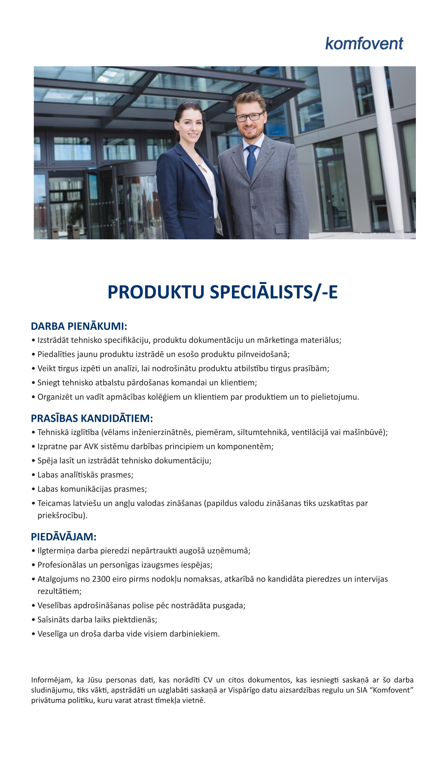 KOMFOVENT ir starptautisks ventilācijas sistēmu ražošanas uzņēmums ar ražotnēm Latvijā, Lietuvā, kā arī pārstāvniecībām daudzās pasaules valstīs. KOMFOVENT produkti ne tikai garantē cilvēku komfortu, nodrošinot svaigu gaisu telpās, bet arī palīdz nodrošināt drošību ugunsgrēka gadījumos.KOMFOVENT mērķis ir nepārtraukti augt un attīstīties, piedāvājot tirgū inovatīvas produktus un pārsniegt arvien mainīgās klientu un partneru vajadzības.