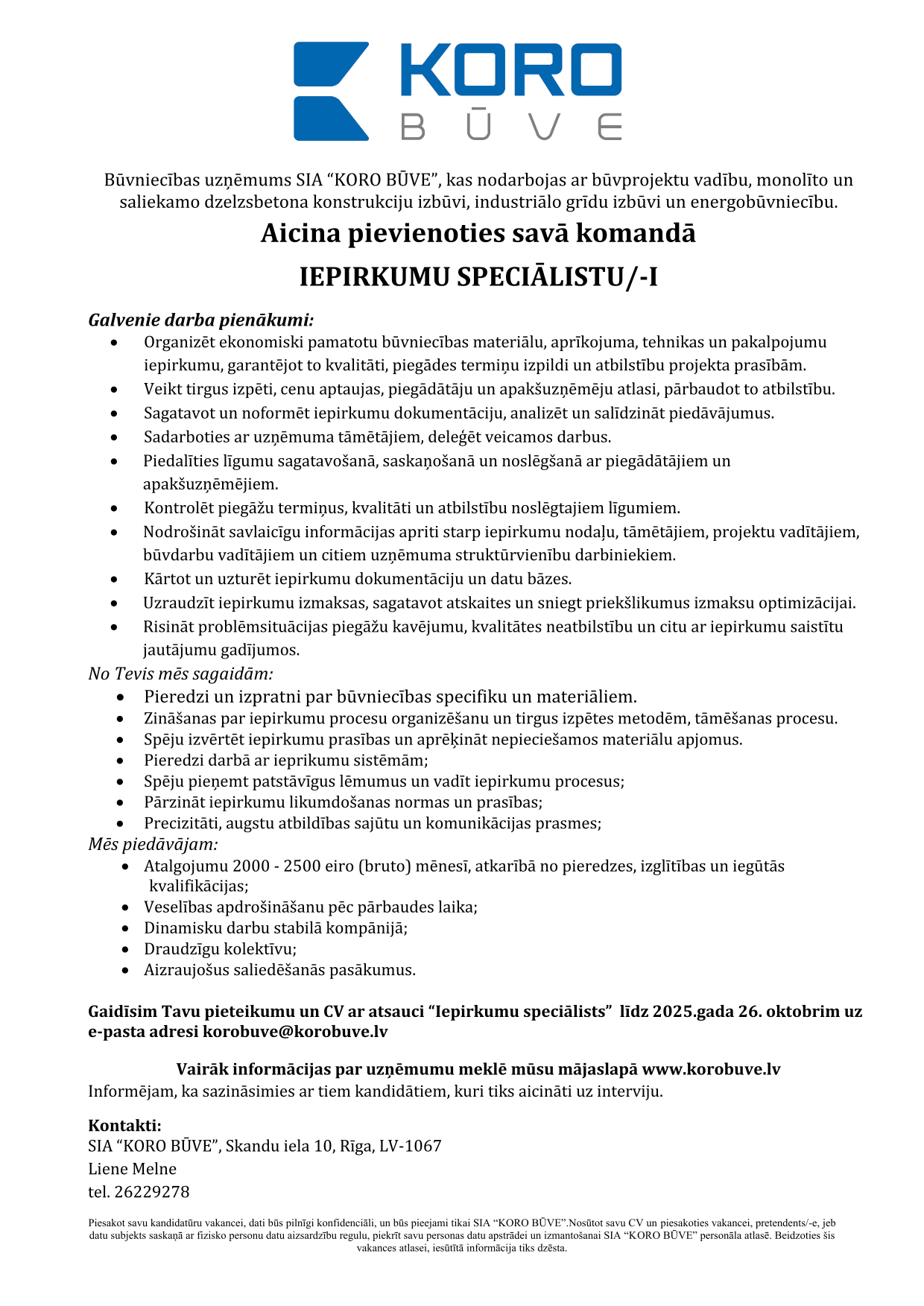 Additional information: 2000 - 2500 EUR (bruto) mēnesī, atkarībā no pieredzes, izglītības un iegūtās kvalifikācijas