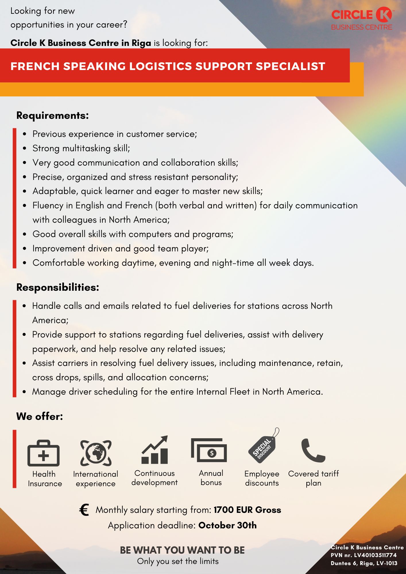 Circle K Business Centre in Riga is one of the biggest support offices in our global Circle K family. Were more than 750 professionals who are providing services in areas of Finance, Logistics, IT, Customer Service & HR. Join our international team!