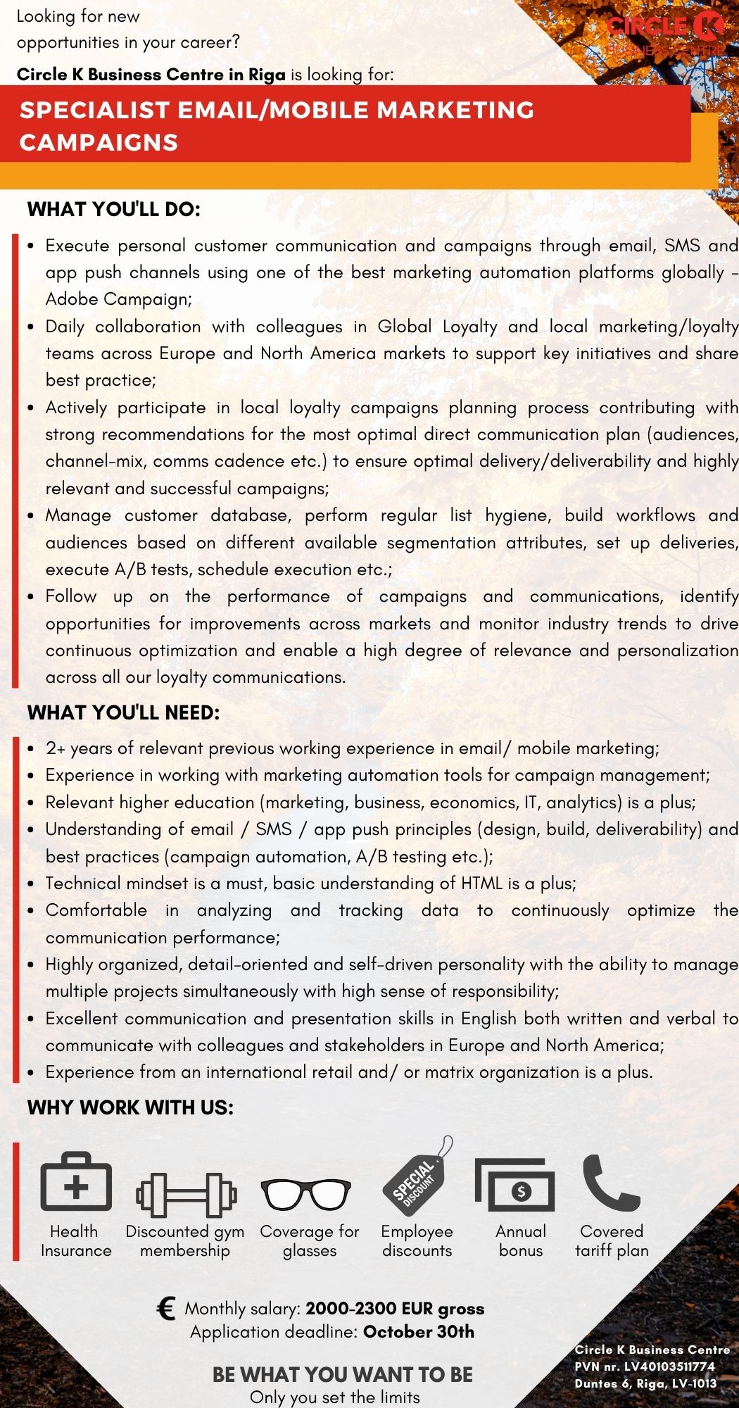 Circle K Business Centre in Riga is one of the biggest support offices in our global Circle K family. Were more than 750 professionals who are providing services in areas of Finance, Logistics, IT, Customer Service & HR. Join our international team!