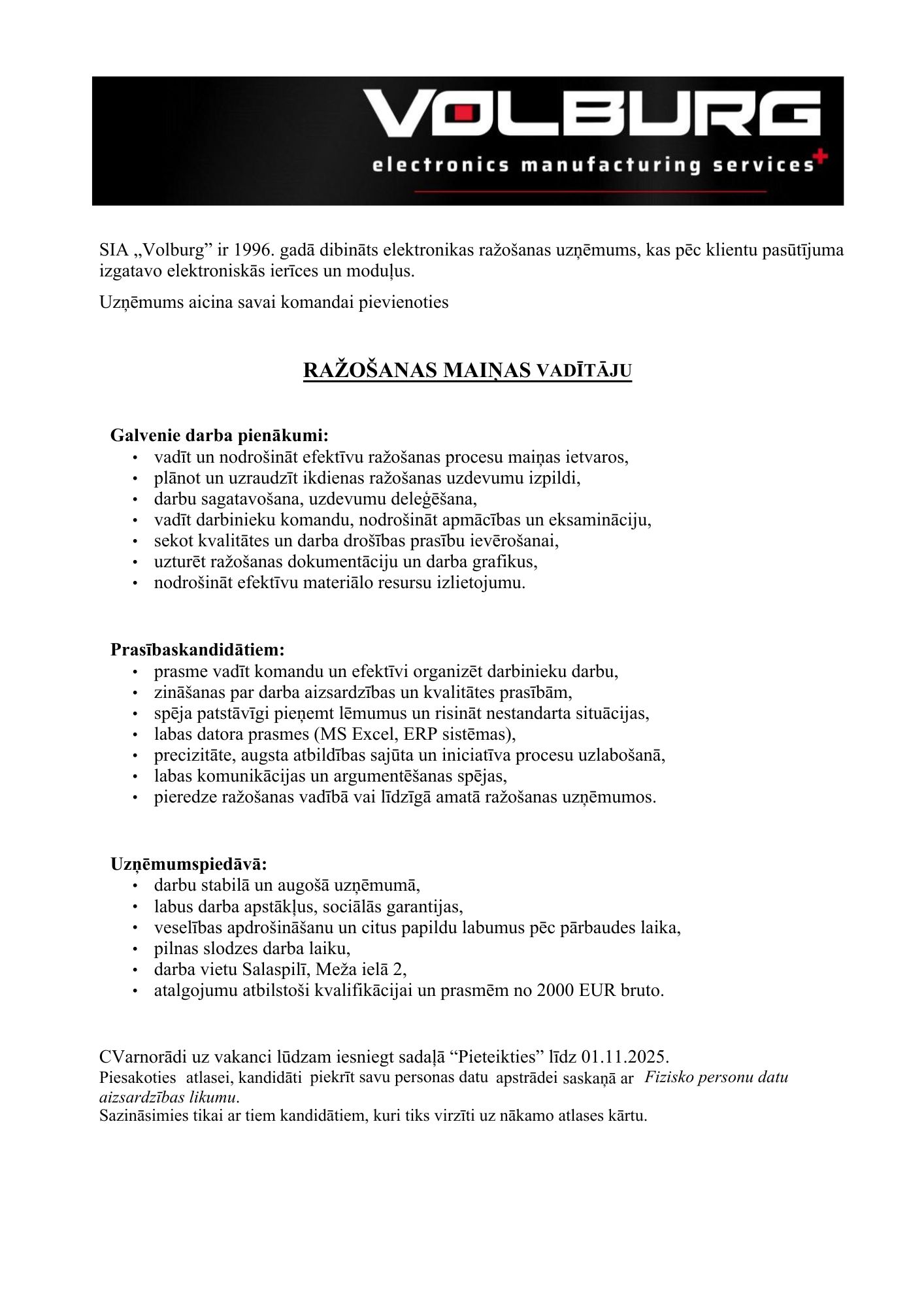 Volburg" SIA ir elektronikas ražošanas uzņēmums, kas dibināts 1996.gadā.