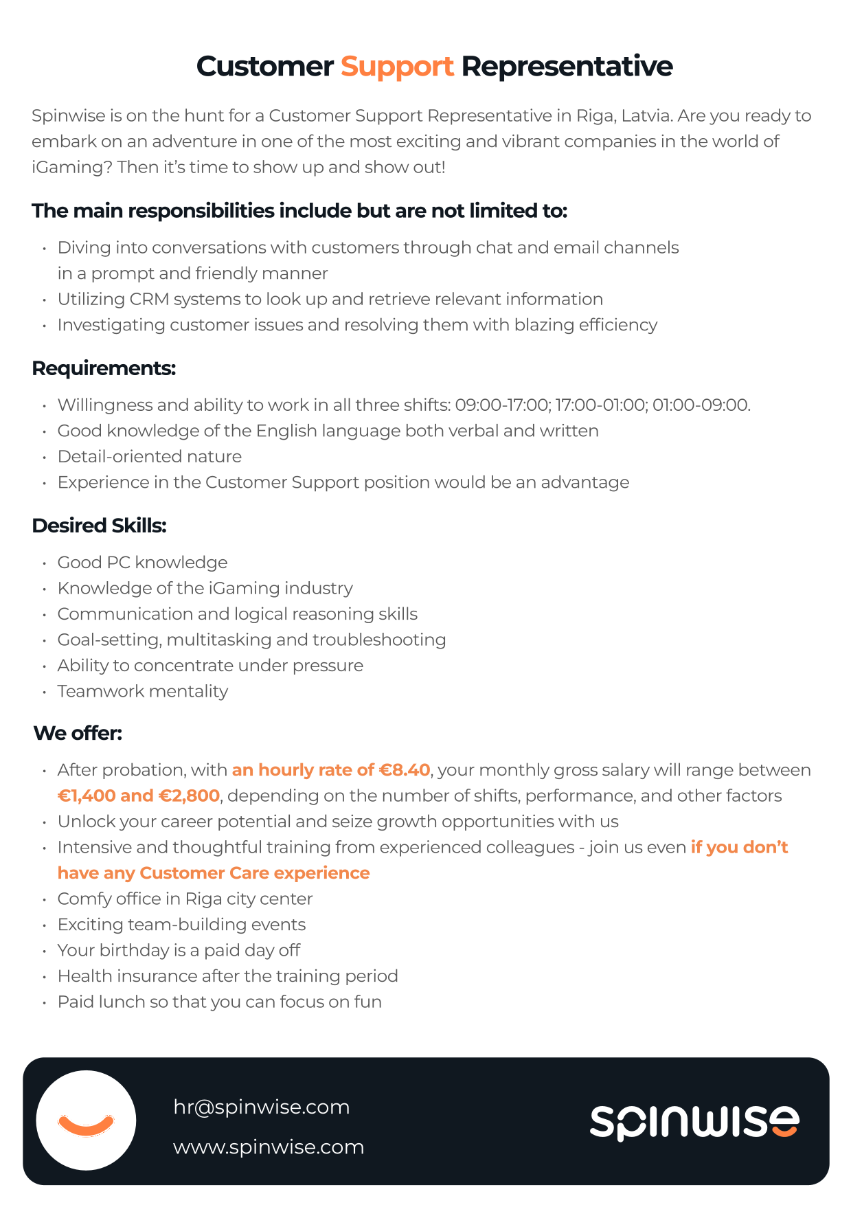 Additional information: After probation, with an hourly rate of €8.40, your monthly gross salary will range between €1,400 and €2,800, depending on the number of shifts, performance, and other factors.