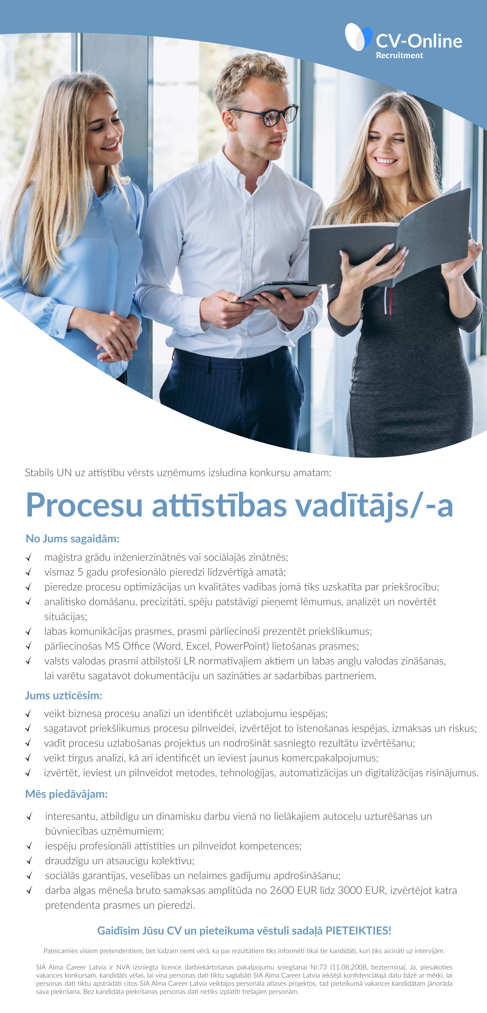 CV-Online Recruitment ir viena no vadošajām personāla atlases kompānijām Latvijā, kas ietilpst Alma Career grupā un sniedz personāla atlasi un novērtēšanu speciālistu un vadības amatiem, izmantojot mūsdienīgus un efektīvus risinājumus.