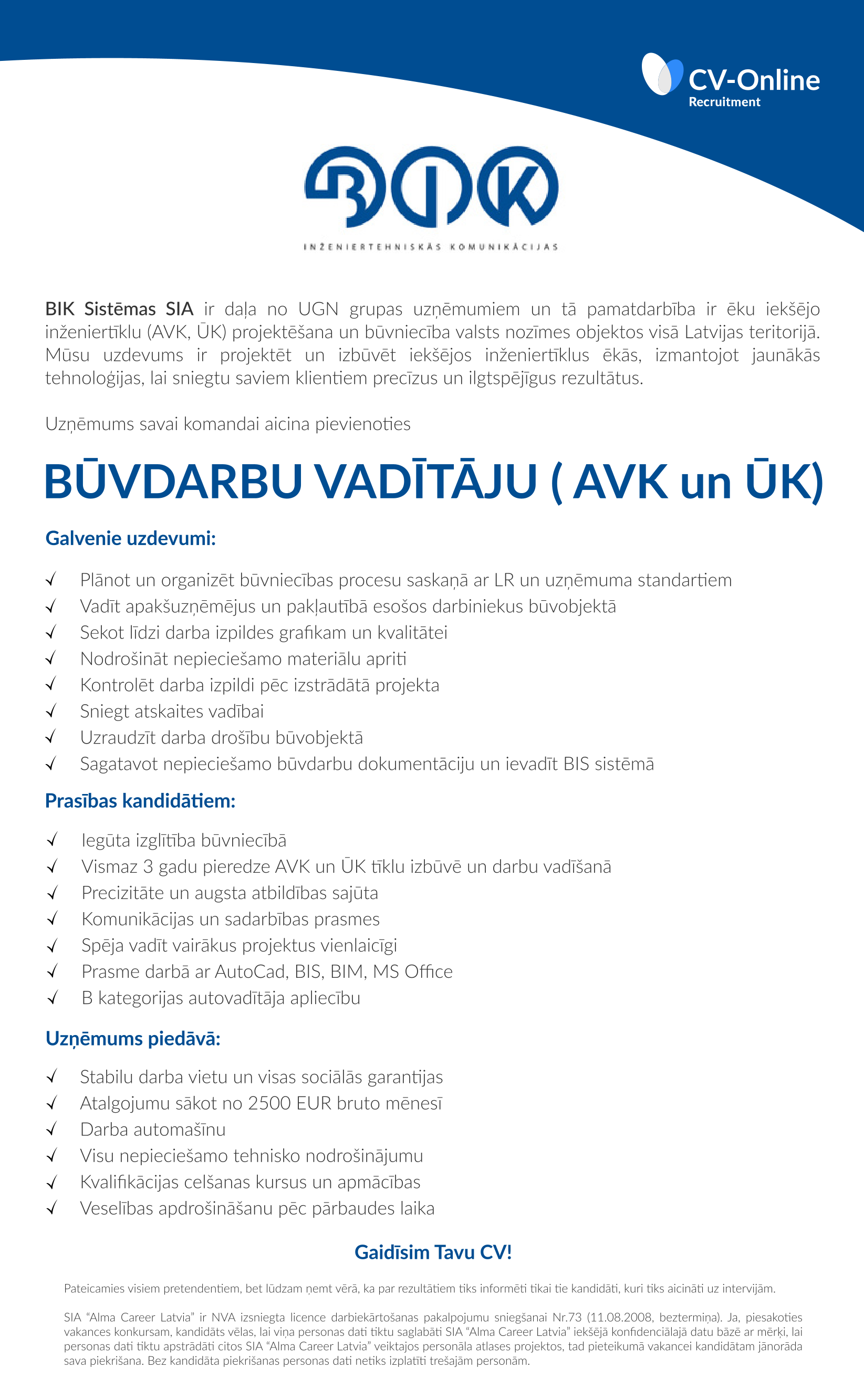 BIK Sistēmas SIA ir daļa no UGN grupas uzņēmumiem un tā pamatdarbība ir ēku iekšējo