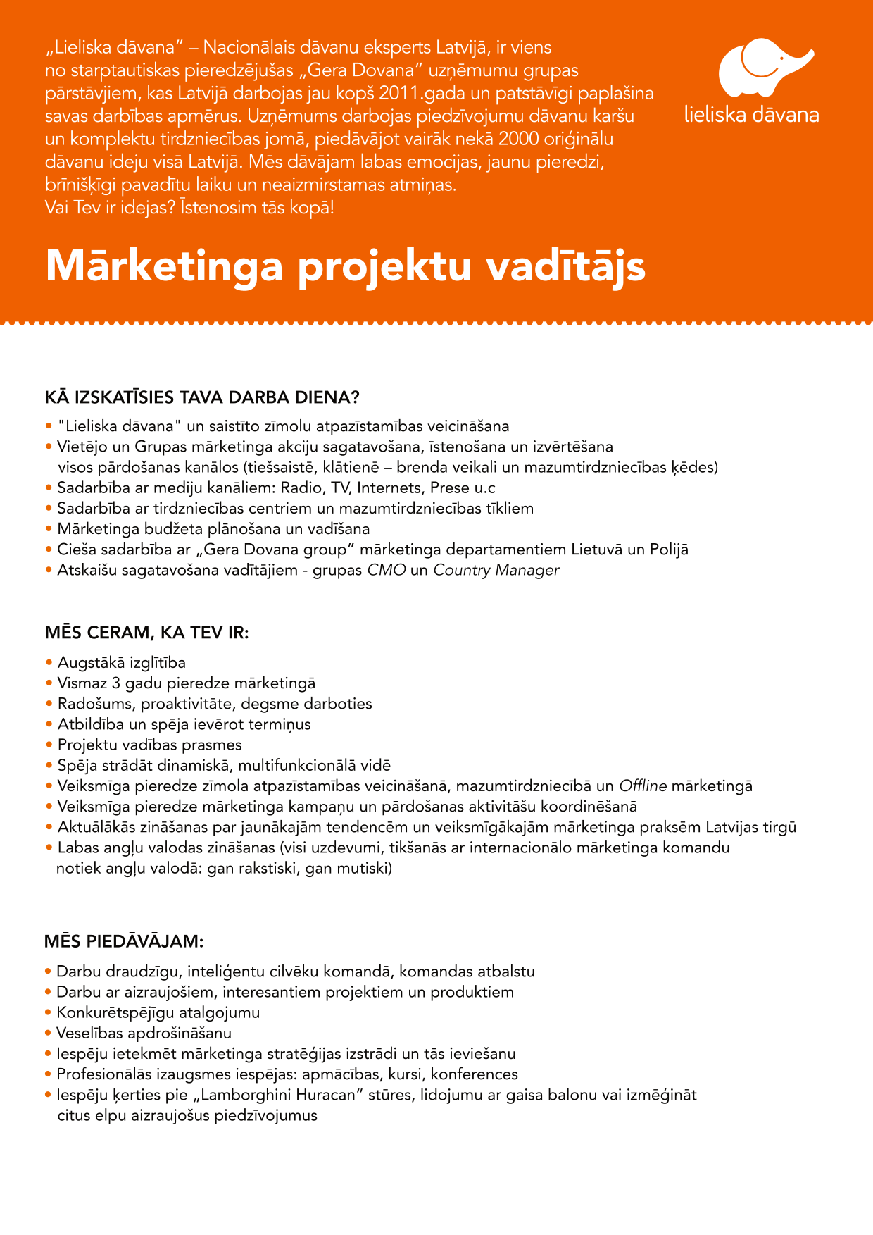 "Lieliska dāvana" - Nacionālais dāvanu eksperts Latvijā, ir viens no starptautiskas pieredzējušas "Gera Dovana" uzņēmumu grupas pārstāvjiem, kas Latvijā darbojas jau kopš 2011.gada un patstāvīgi paplašina savas darbības apmērus. Uzņēmums darbojas piedzīvojumu dāvanu karšu un komplektu tirdzniecības jomā, piedāvājot vairāk nekā 2000 oriģinālu dāvanu ideju visā Latvijā. Mēs dāvājam labas emocijas, jaunu pieredzi, brīnišķīgi pavadītu laiku un neaizmirstamas atmiņas.