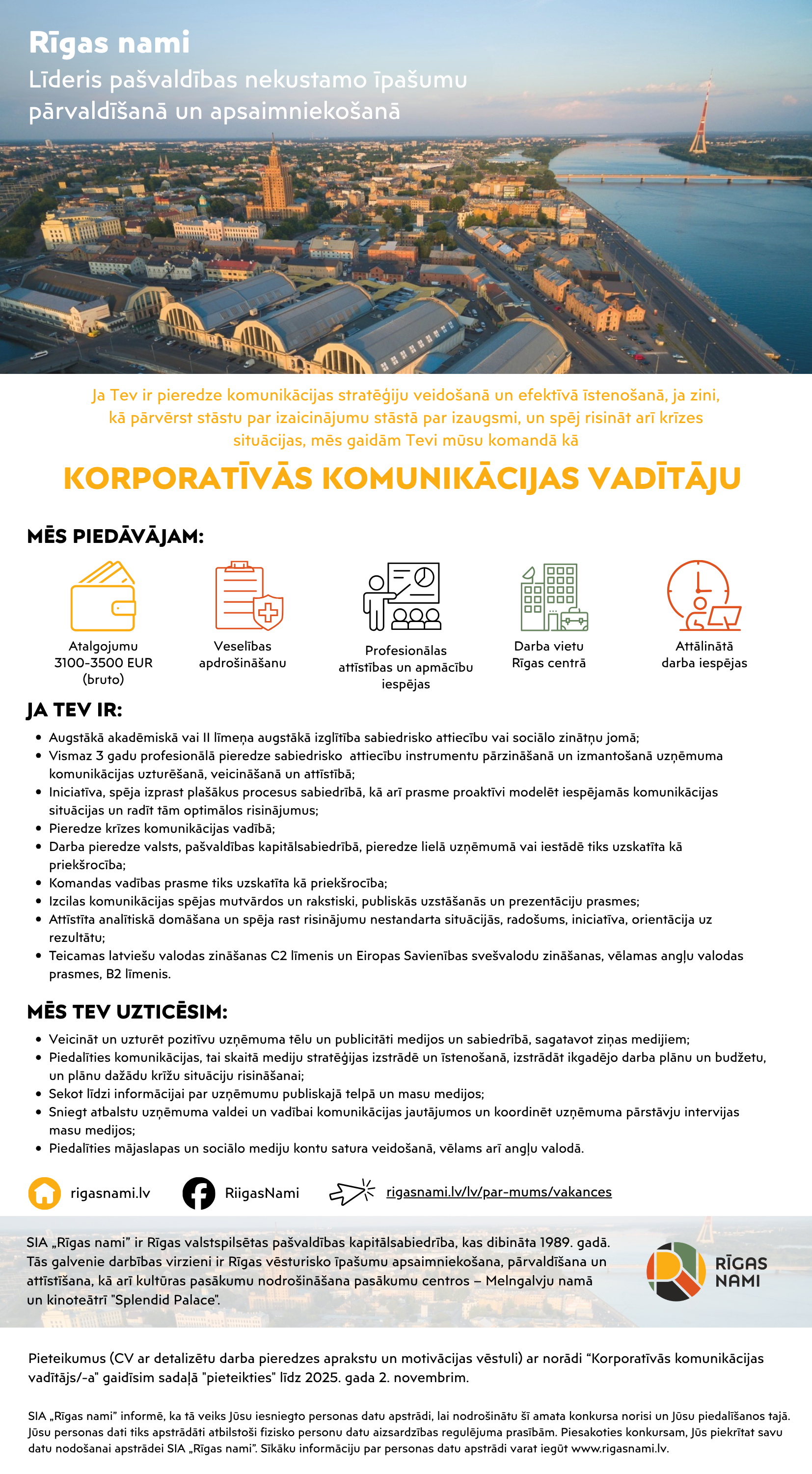 Rīgas pilsētas kapitālsabiedrība, kuras galvenie darbības virzieni ir īpašumu pārvaldīšana, apsaimniekošana un attīstīšana, kā arī kultūras pasākumu norises nodrošināšana pasākumu centrā "Melngalvju nams, "Rīgas Kongresu nams" un kinoteātrī "Splendid Palace".