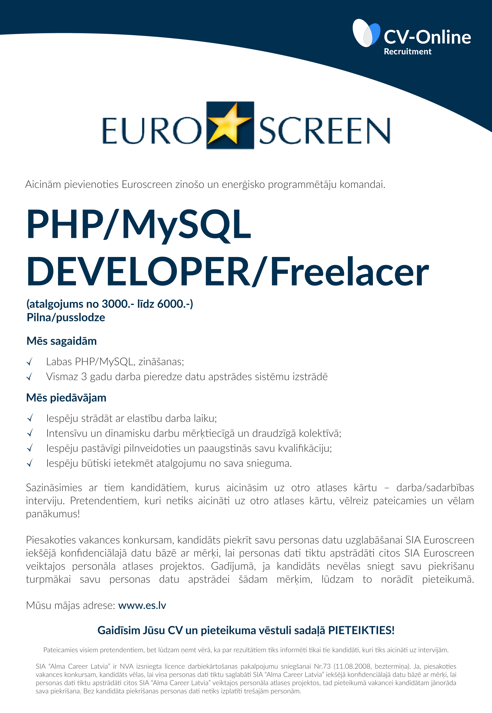 PHP izstrādātājs / FullStack vai Backend