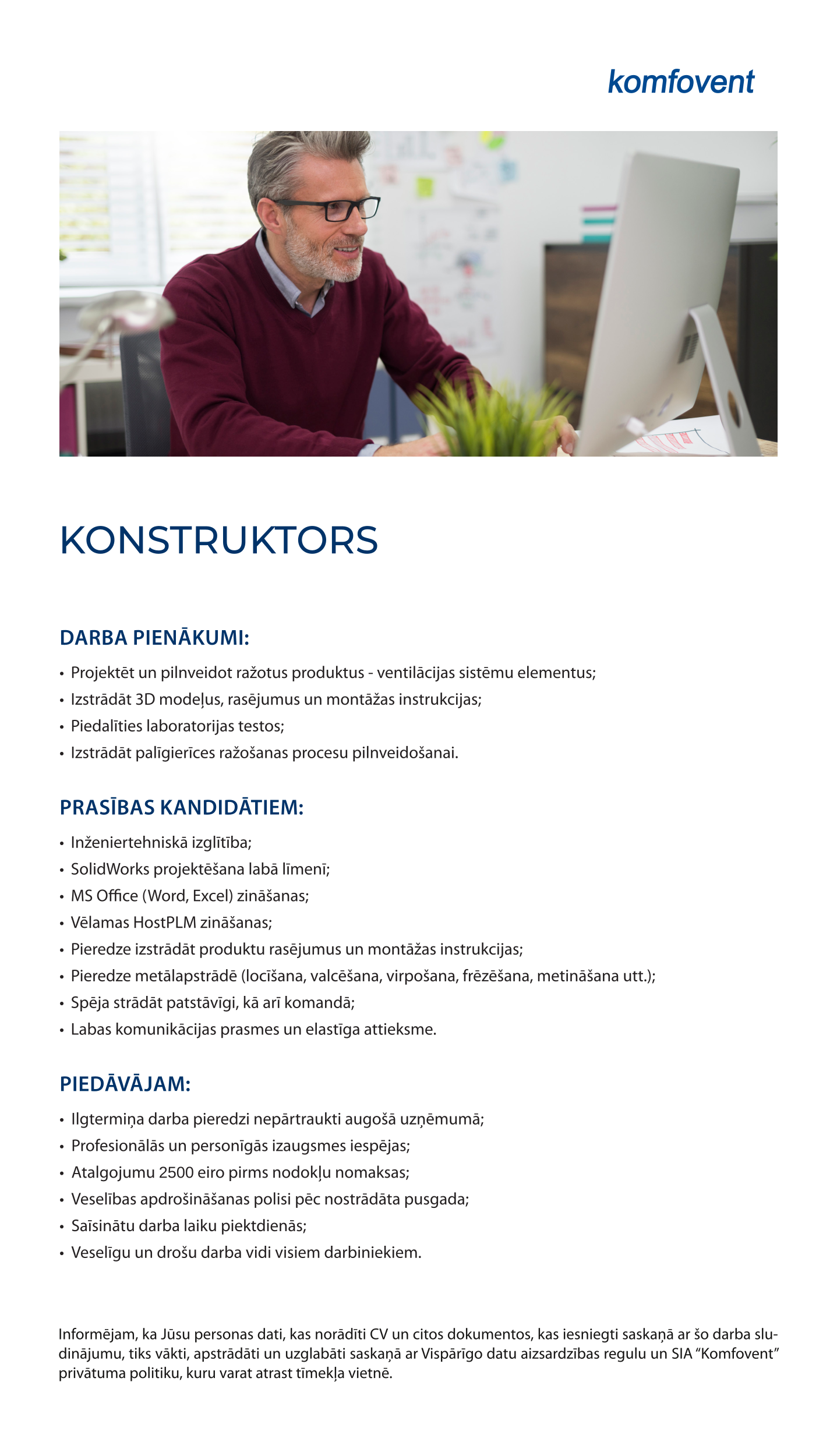 KOMFOVENT ir starptautisks ventilācijas sistēmu ražošanas uzņēmums ar ražotnēm Latvijā, Lietuvā, kā arī pārstāvniecībām daudzās pasaules valstīs. KOMFOVENT produkti ne tikai garantē cilvēku komfortu, nodrošinot svaigu gaisu telpās, bet arī palīdz nodrošināt drošību ugunsgrēka gadījumos.KOMFOVENT mērķis ir nepārtraukti augt un attīstīties, piedāvājot tirgū inovatīvas produktus un pārsniegt arvien mainīgās klientu un partneru vajadzības.