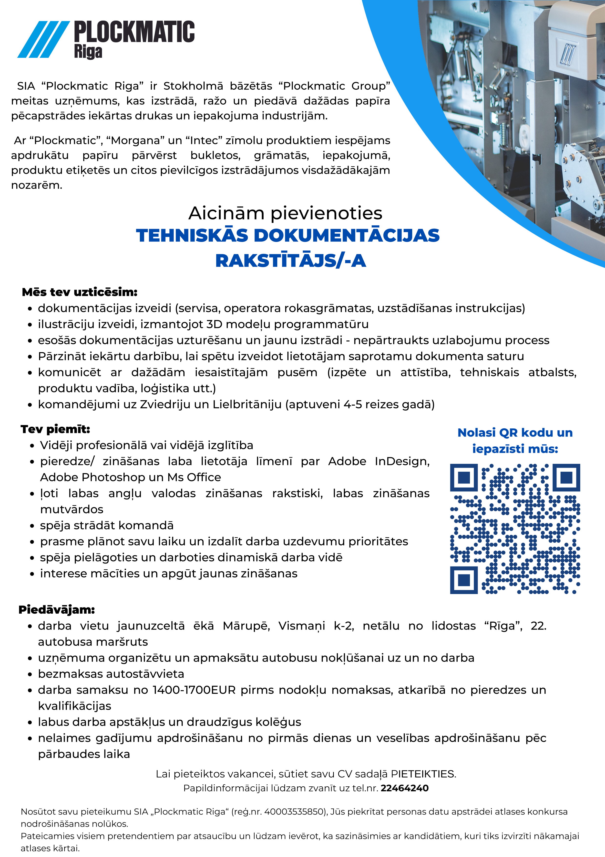 Additional information: no 1400 - 1700 EUR pirms nodokļu nomaksas, atkarībā no pieredzes un kvalifikācijas