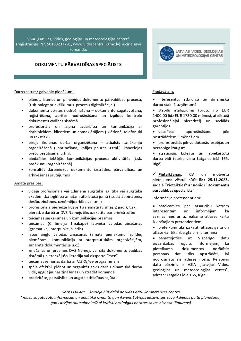 Additional information: Attalgojums atbilstoši profesionālajai pieredzei.