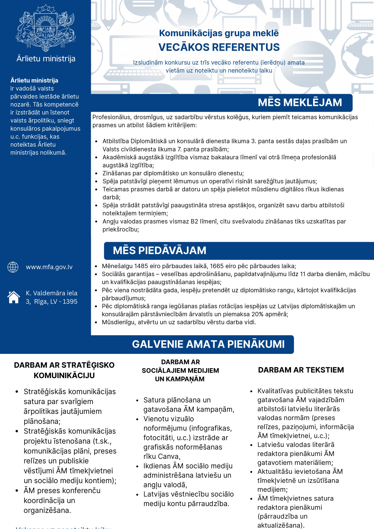 Additional information: Mēnešalga no 1485 eiro līdz 1665 eiro pēc pārbaudes laika.