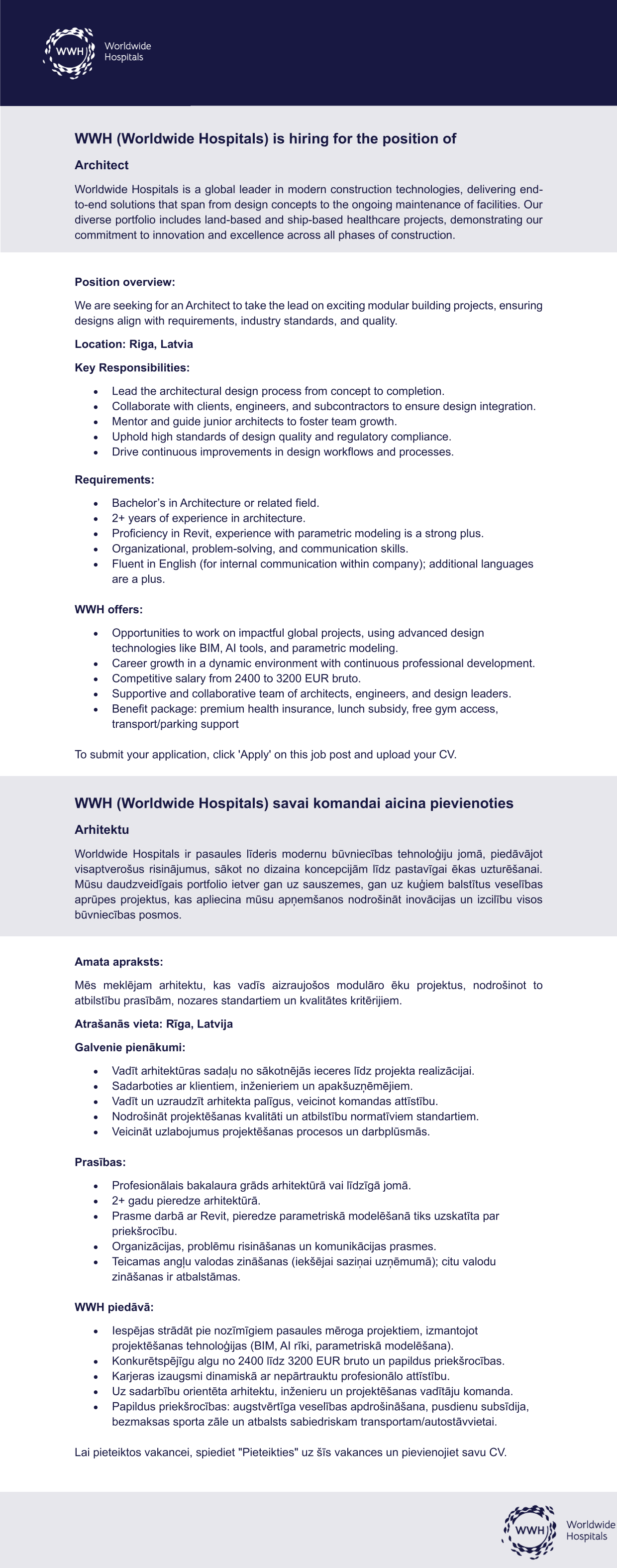 Projektu vadītājs, Būvniecība (Atrašanās vieta: Latvija)