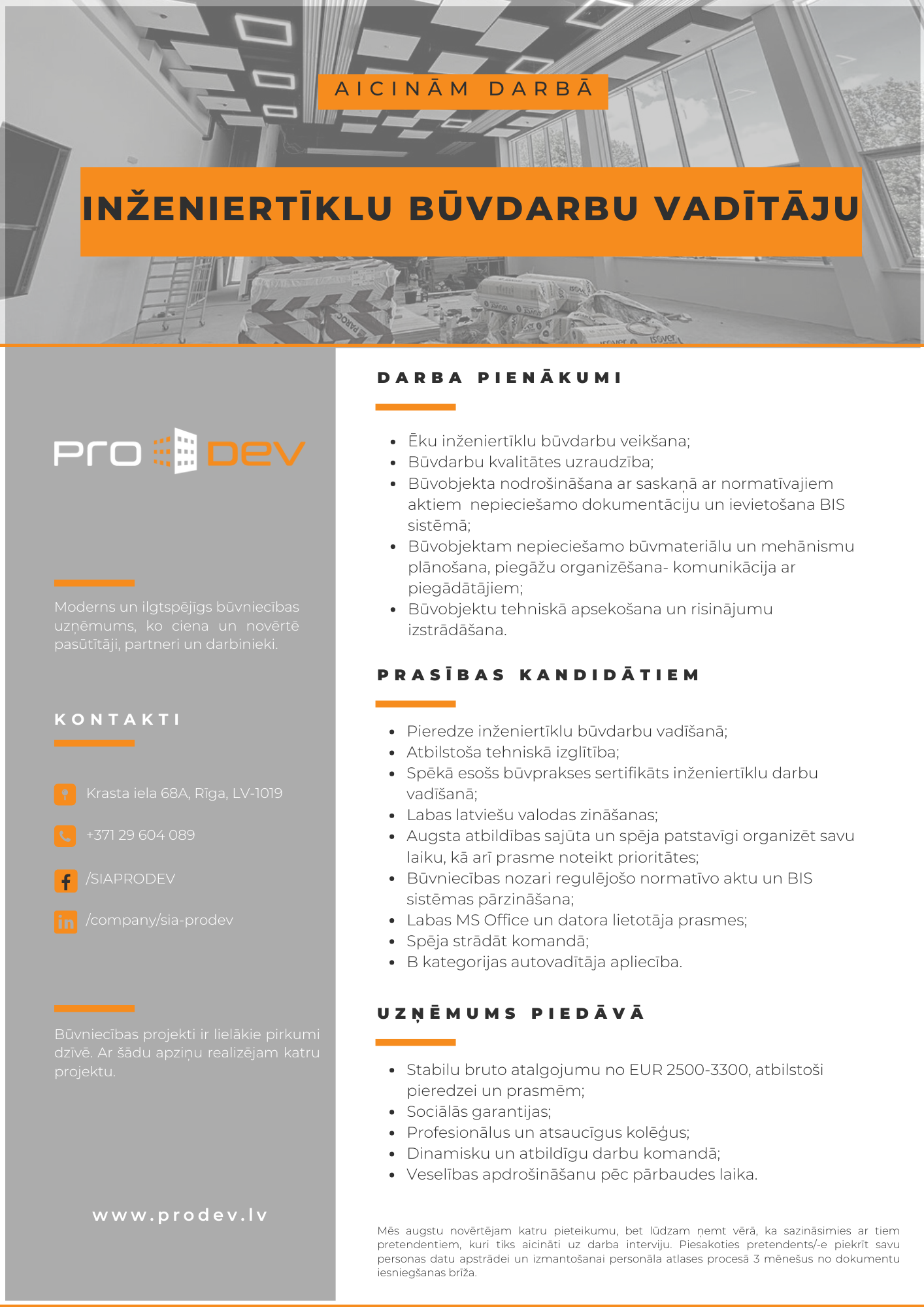 Projektu vadītājs, Būvniecība (Atrašanās vieta: Latvija)