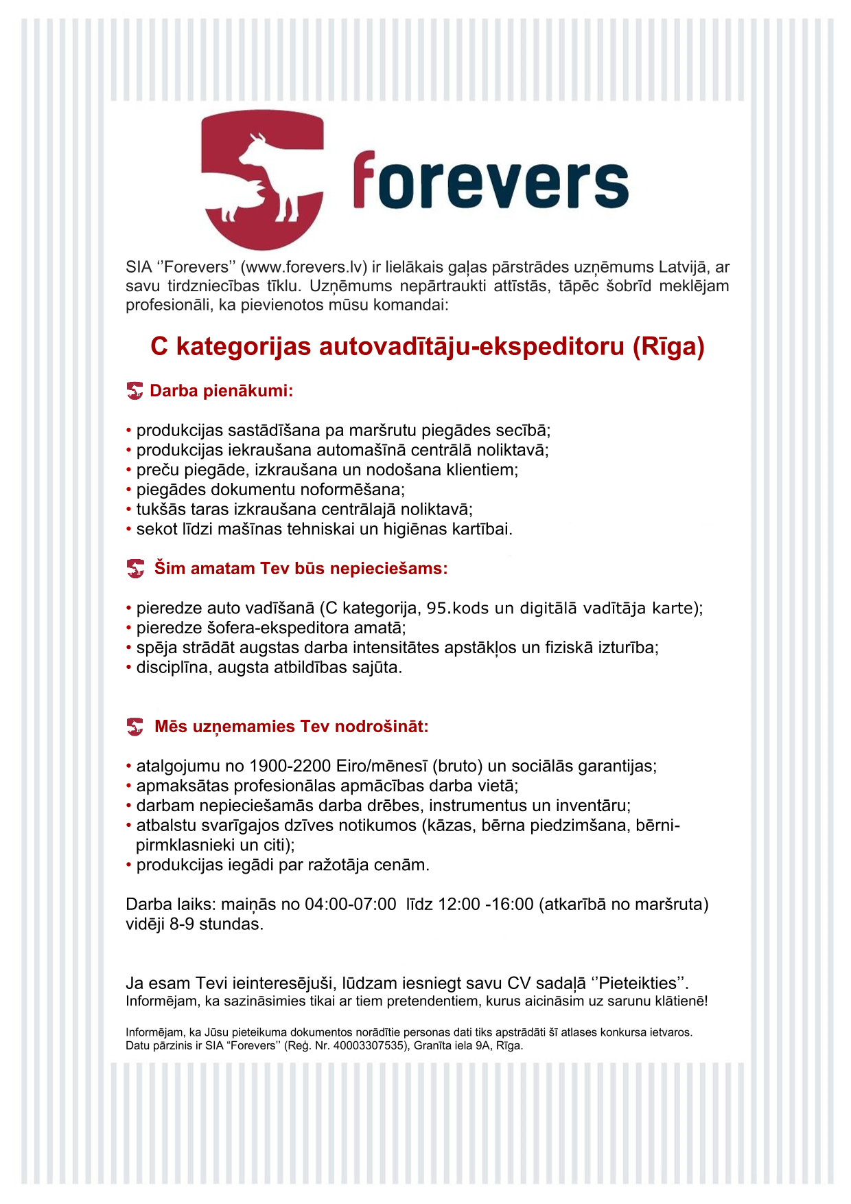 Forevers ir lielākais pašmāju gaļas pārstrādes uzņēmums Latvijā, kas vairāk nekā 20 gadus ražo kvalitatīvu, garšīgu un pircēju iecienītu produkciju. Forevers produkcija ir pieejama gan Forevers veikalos visā Latvijā, gan citās tirdzniecības vietās.
