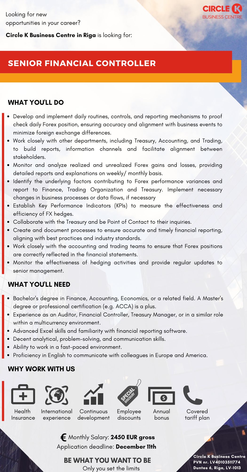Circle K Business Centre in Riga is one of the biggest support offices in our global Circle K family. Were more than 750 professionals who are providing services in areas of Finance, Logistics, IT, Customer Service & HR. Join our international team!
