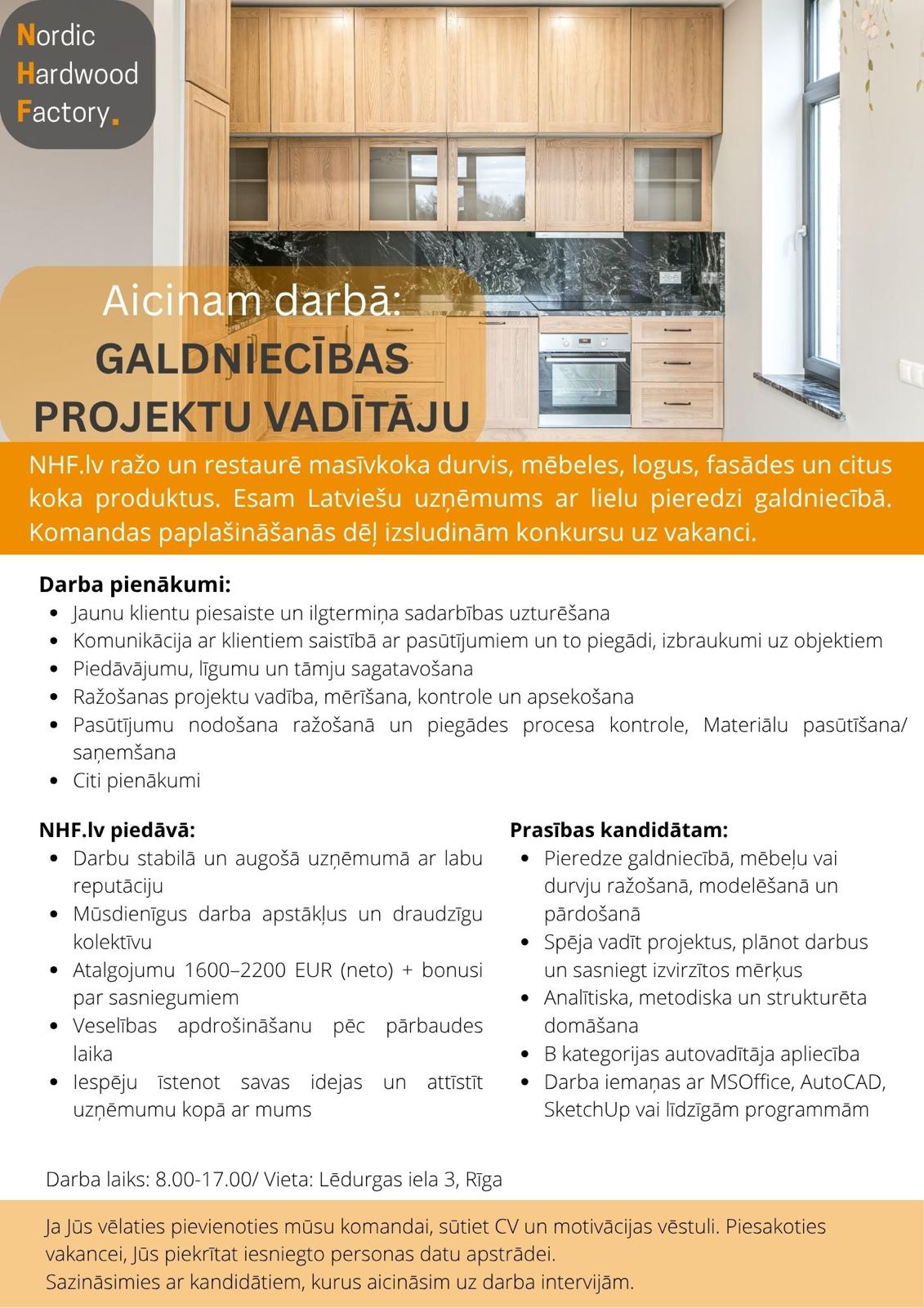 Additional information: Atalgojums 1600 līdz 2200 EUR (neto) + bonusi par sasniegumiem. Veselības apdrošināšana pēc pārbaudes laika.