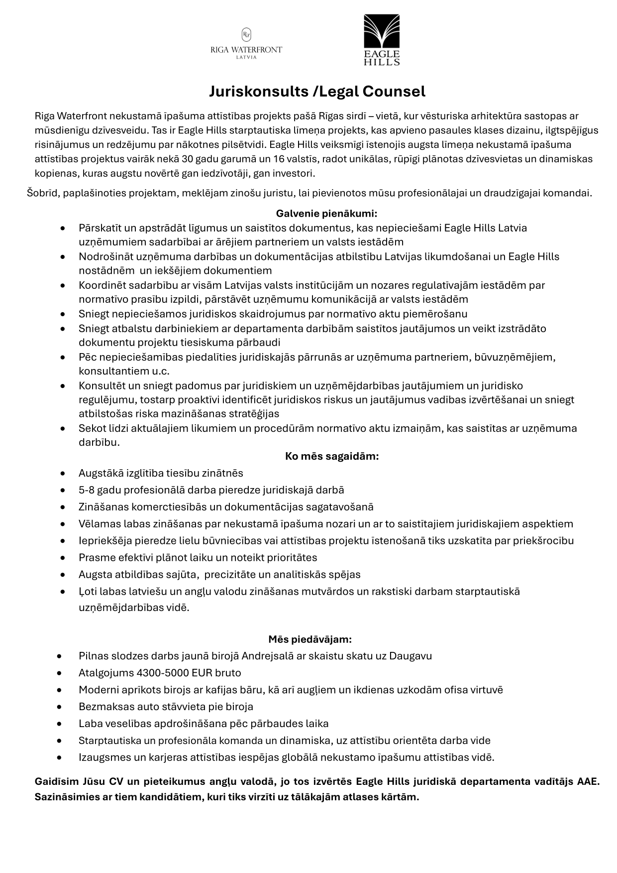 ***Riga Waterfront un Eagle Hills tiek augstu vērtēta darbinieku daudzveidību. Ne tikai atlases procesā, bet arī pieņemot darbā, paaugstinot amatā un nosakot algas apmēru, mēs vienmēr pieņemam lēmumus neatkarīgi no dzimuma, vecuma, izcelsmes, reliģiskās piederības vai citiem dažādības aspektiem. Mēs koncentrējamies uz pieredzi, kvalifikāciju, darba rezultātiem un saderību ar mūsu uzņēmuma vērtībām.