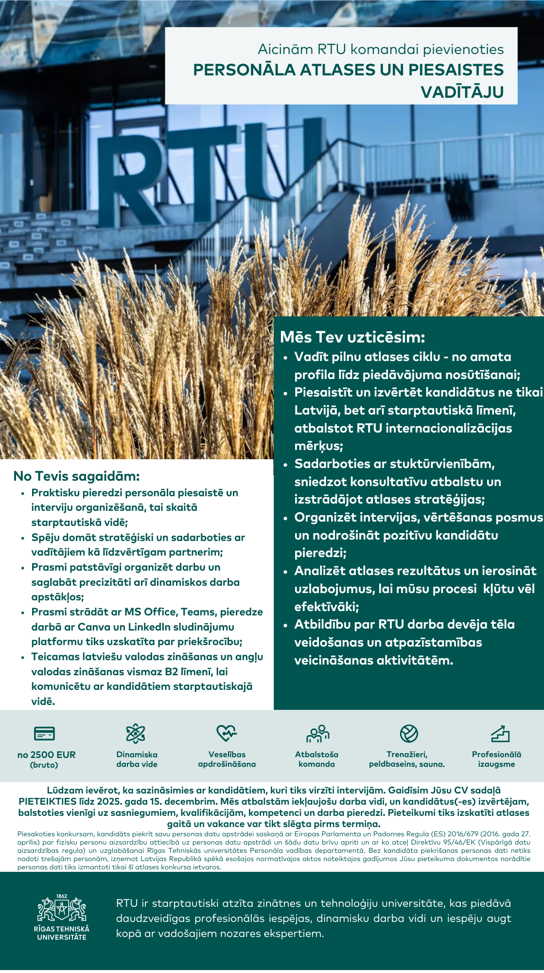 Rīgas Tehniskā universitāte (RTU) ir mūsdienīga, starptautiski pazīstama un prestiža vienīgā daudznozaru tehniskā universitāte Latvijā. RTU mērķtiecīgi attīstās, lai kļūtu par trešās paaudzes tipa universitāti, kas nodrošina ne tikai augstas kvalitātes izglītību, bet arī izcilu pētniecību un valorizāciju inovāciju un tehnoloģiju pārnesi, tādējādi zinātnes sasniegumus iedzīvinot praksē.
