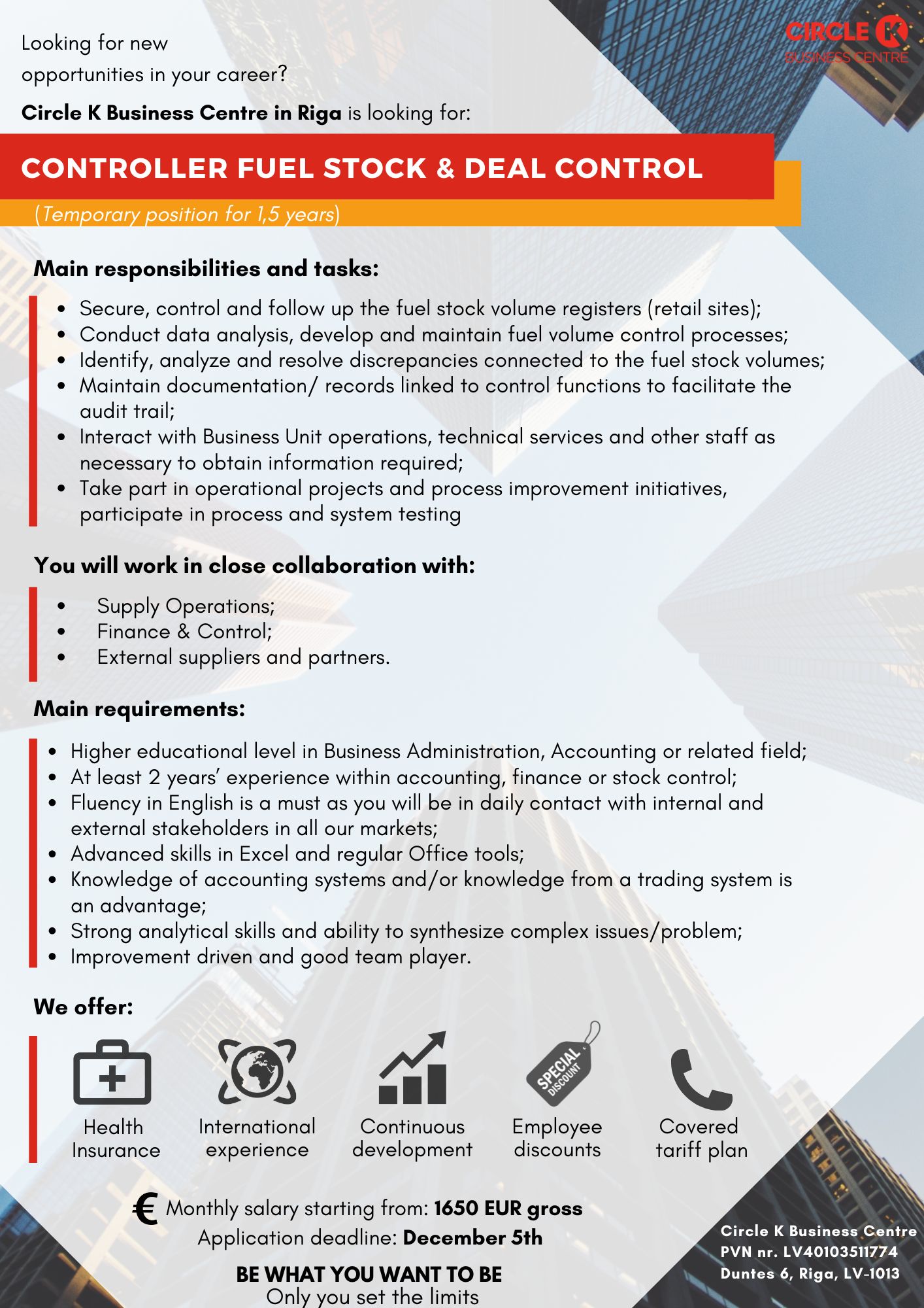 Circle K Business Centre in Riga is one of the biggest support offices in our global Circle K family. Were more than 750 professionals who are providing services in areas of Finance, Logistics, IT, Customer Service & HR. Join our international team!