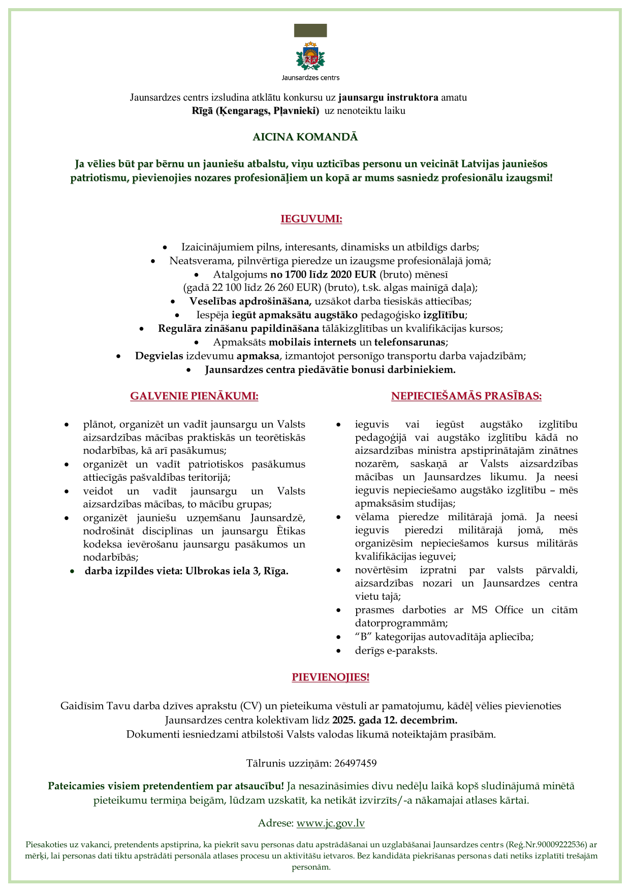 Additional information: gadā 22 100 līdz 26 260 EUR bruto