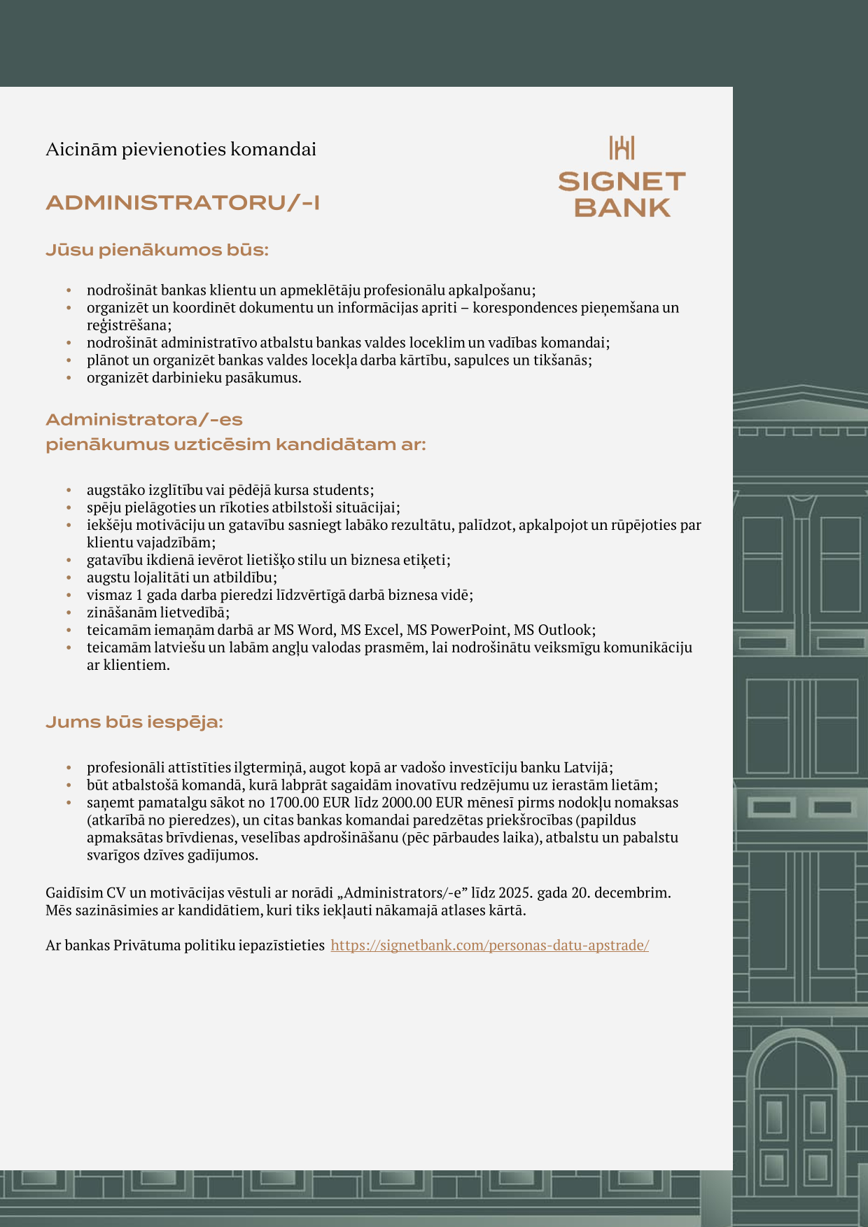 Signet Bank ir dibināta 1991. gadā un ir viena no pirmajām neatkarīgas Latvijas bankām. Signet Bank ir Latvijas vadošā investīciju banka, kas vietējiem uzņēmējiem un uzņēmumiem piedāvā ilgtspējīgus finansēšanas un investīciju risinājumus. Kopš 2021. gada Signet Bank jau vairāk nekā 40 Latvijas uzņēmumiem ar obligāciju un akciju emisijām piesaistījusi papildu finansējumu 450 milj. eiro apmērā. Signet Bank ir vadošais korporatīvo obligāciju organizators Latvijā un vadošais biržas brokeris Baltijā 2023. gadā saskaņā ar Nasdaq Biržas datiem.Signet Bank komandu veido ap 150 nozares profesionāļiem.
