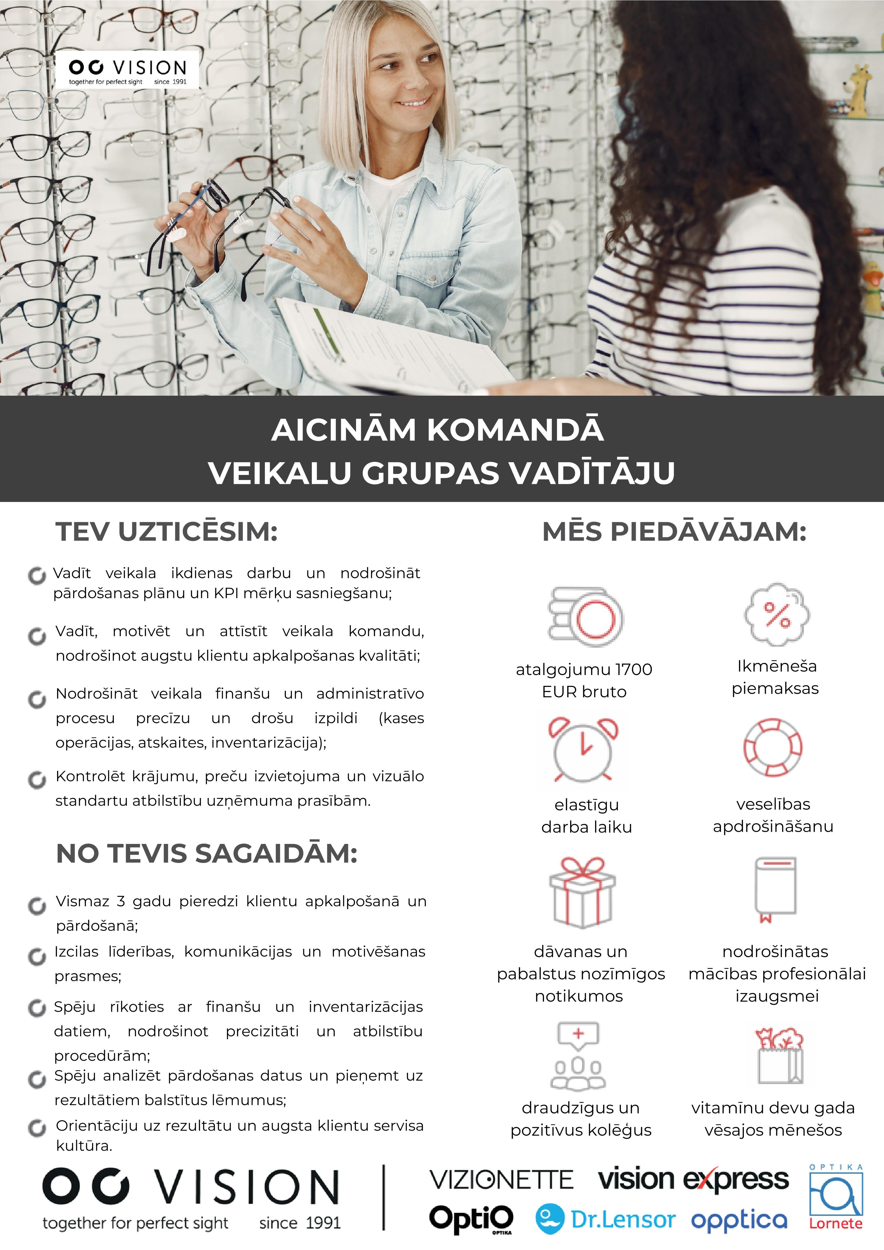 OC VISION ir lielākais optikas un optometrijas pakalpojumu sniedzējs Baltijas valstīs ar fokusu uz klientu acu veselību un redzes komfortu.