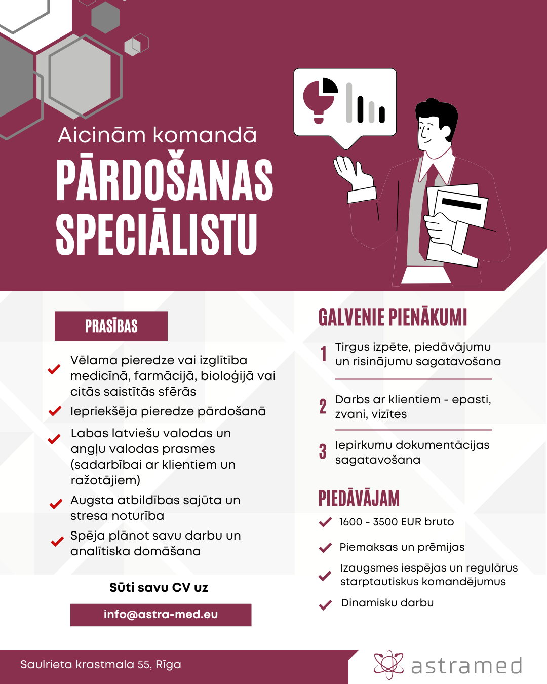 AstraMed ir vadošais medicīnisko ierīču un laboratorijas instrumentu izplatītājs Baltijā. Mēs esam apņēmušies nodrošināt augstas kvalitātes produktus un pakalpojumus veselības aprūpes nozarei, tādējādi uzlabojot pacientu aprūpi. Mūsu komanda ir pieredzējusi un profesionāla, un mēs lepojamies ar savu ieguldījumu sabiedrības veselības veicināšanā.