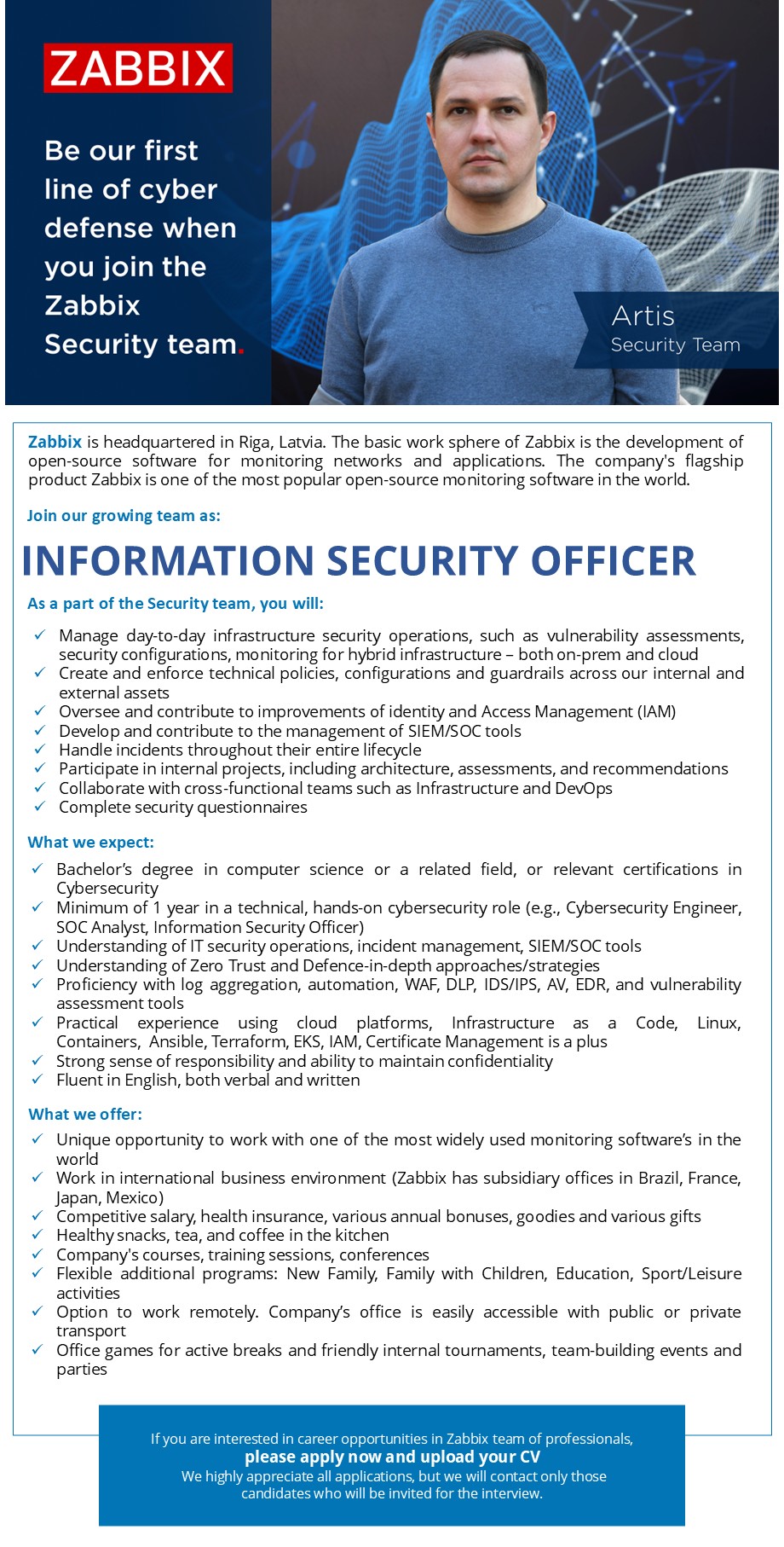 Whatever Zabbix does - whether it is preparing for a new release, organizing conference, solving customers' monitoring tasks, or updating the training program, behind each of these actions is a whole team of professionals. There are currently developers, test engineers, integrators, technical consultants, HR, sales, marketing, and partnership departments working on all Zabbix activities all around the globe, making the company grow and develop.