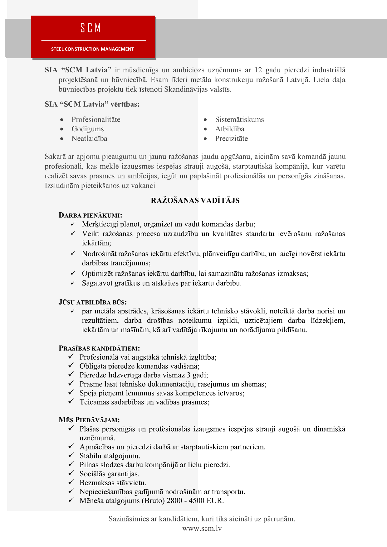 SCM Latvia kopš 2007.gada veic visa veida industriālo un komerciālo projektu projektēšanu, konstrukciju ražošanu un būvniecību.