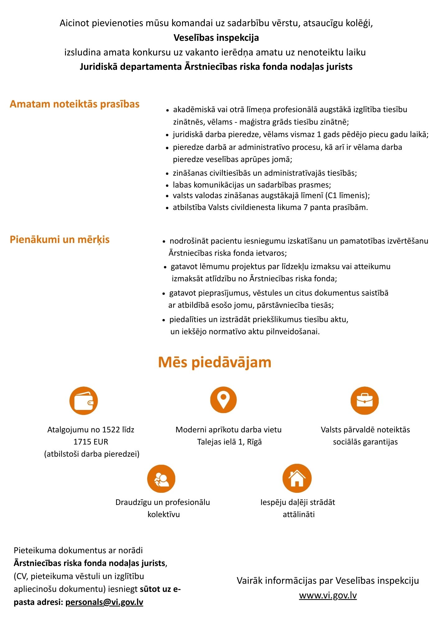 Additional information: mēnešalga (bruto) atbilstoši 10. mēnešalgu grupai no 1522.00-1715.00 EUR (bruto);