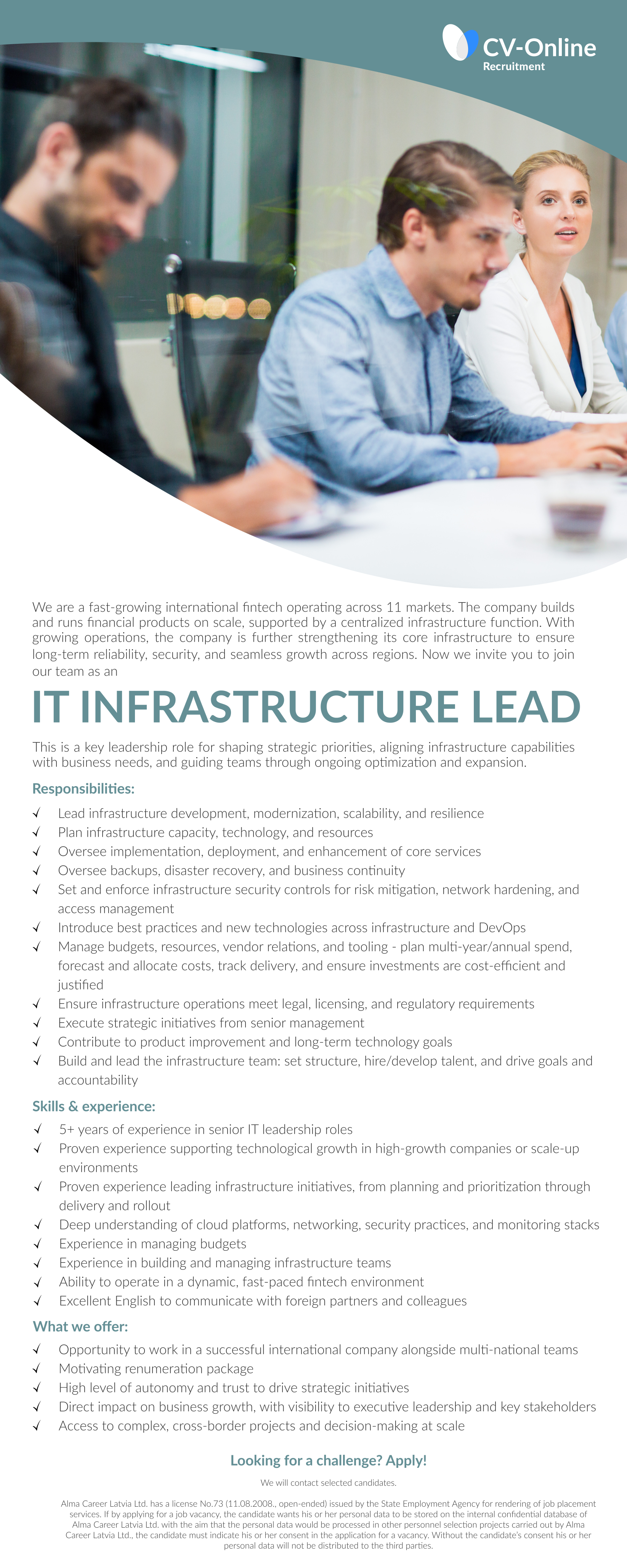 IT infrastruktūras vadītājs/-a