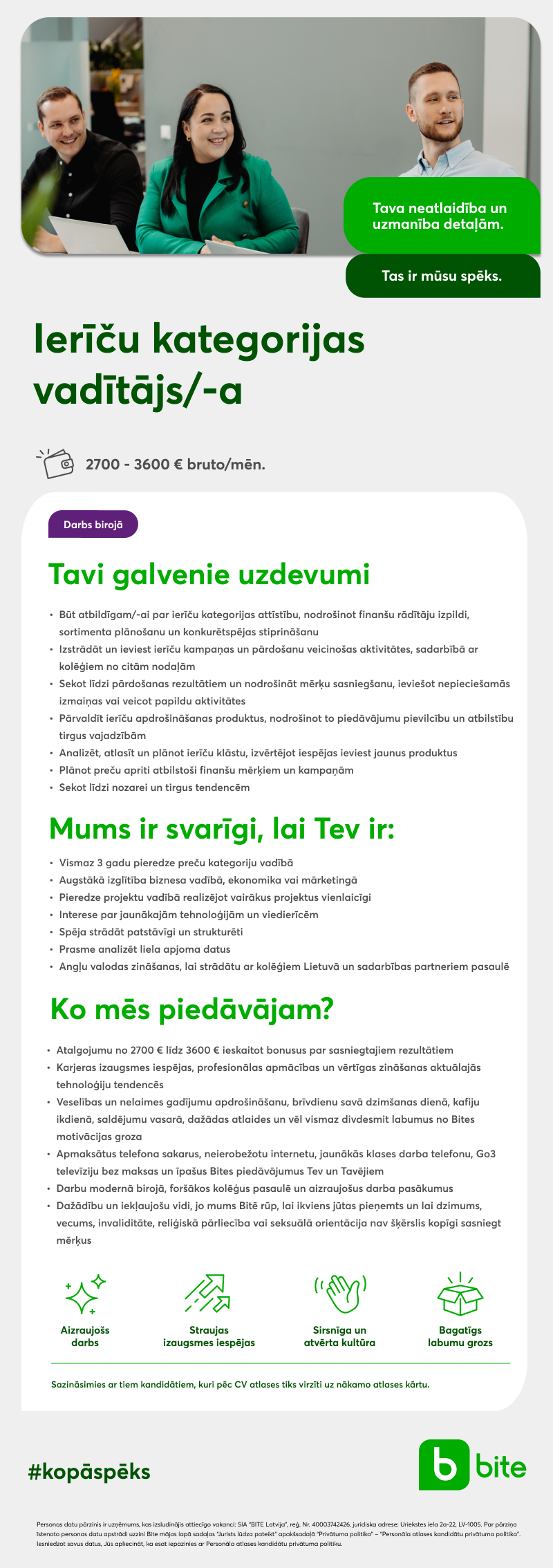 Bite visstraujāk augošais informācijas un komunikācijas tehnoloģiju uzņēmums Latvijā, kas jau vairāk nekā 18 gadus nodrošina mūsdienīgus, inovatīvus, klientu vajadzībām atbilstošus mobilo un fiksēto sakaru pakalpojumus, nākamās paaudzes televīziju Go3 un integrētus IKT risinājumus biznesa klientiem. Šobrīd nodarbinām vairāk nekā 950 dažādu jomu speciālistu visā Latvijā. Bites biroji atrodas Rīgā, Rēzeknē un Bites saloni atrodas visā Latvijā.