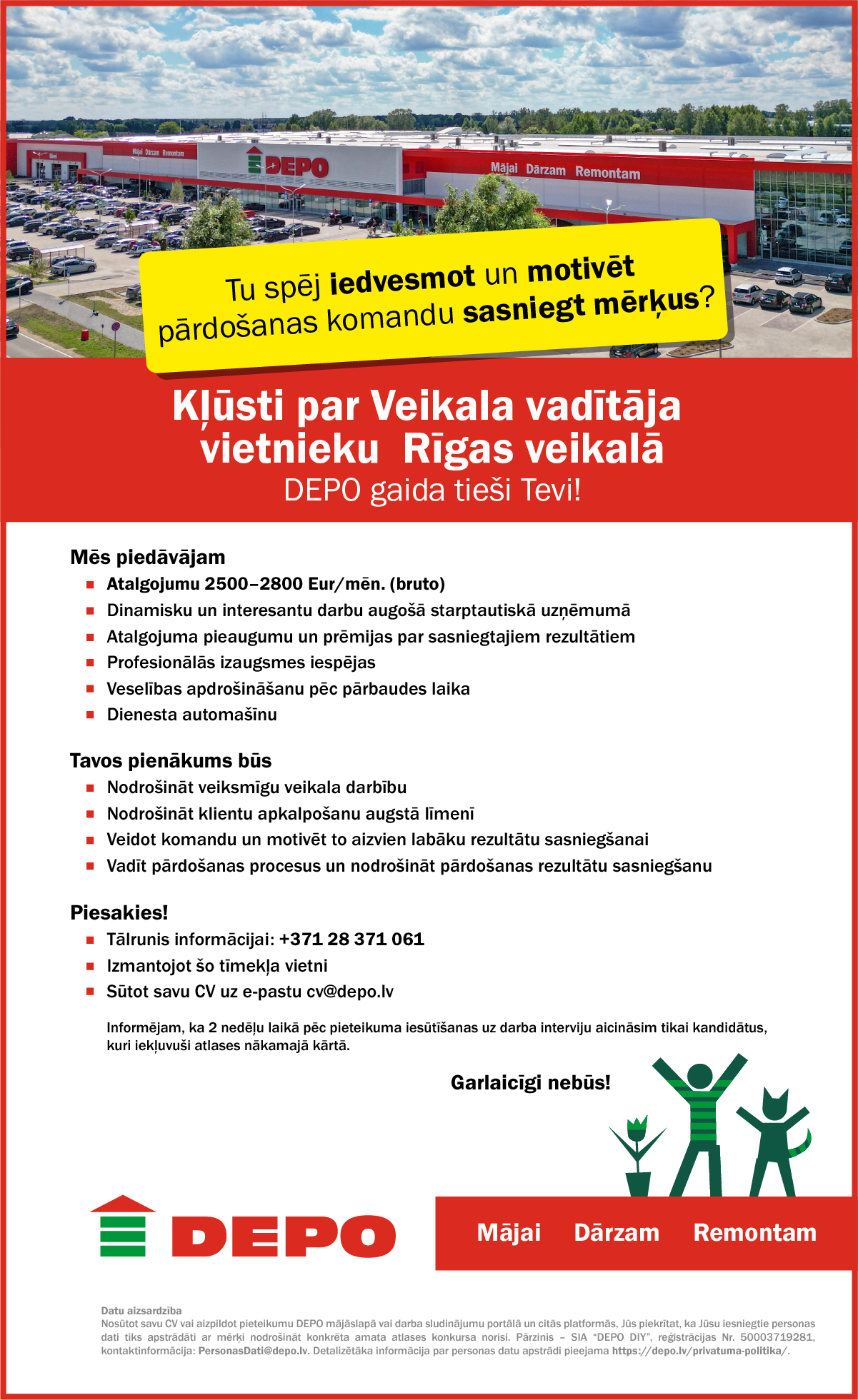 DEPO ir 100% Latvijas kapitāla uzņēmums, kurš darbojas visās Baltijas valstīs un kurā strādā vairāk kā 3500 darbinieku. DEPO ir viens no lielākajiem un pazīstamākajiem mājas, dārza un būves preču mazumtirgotājiem Baltijā un jau 20 gadus nodrošina plašu preču klāstu gan DIY entuziastu, gan profesionāļu vajadzībām.