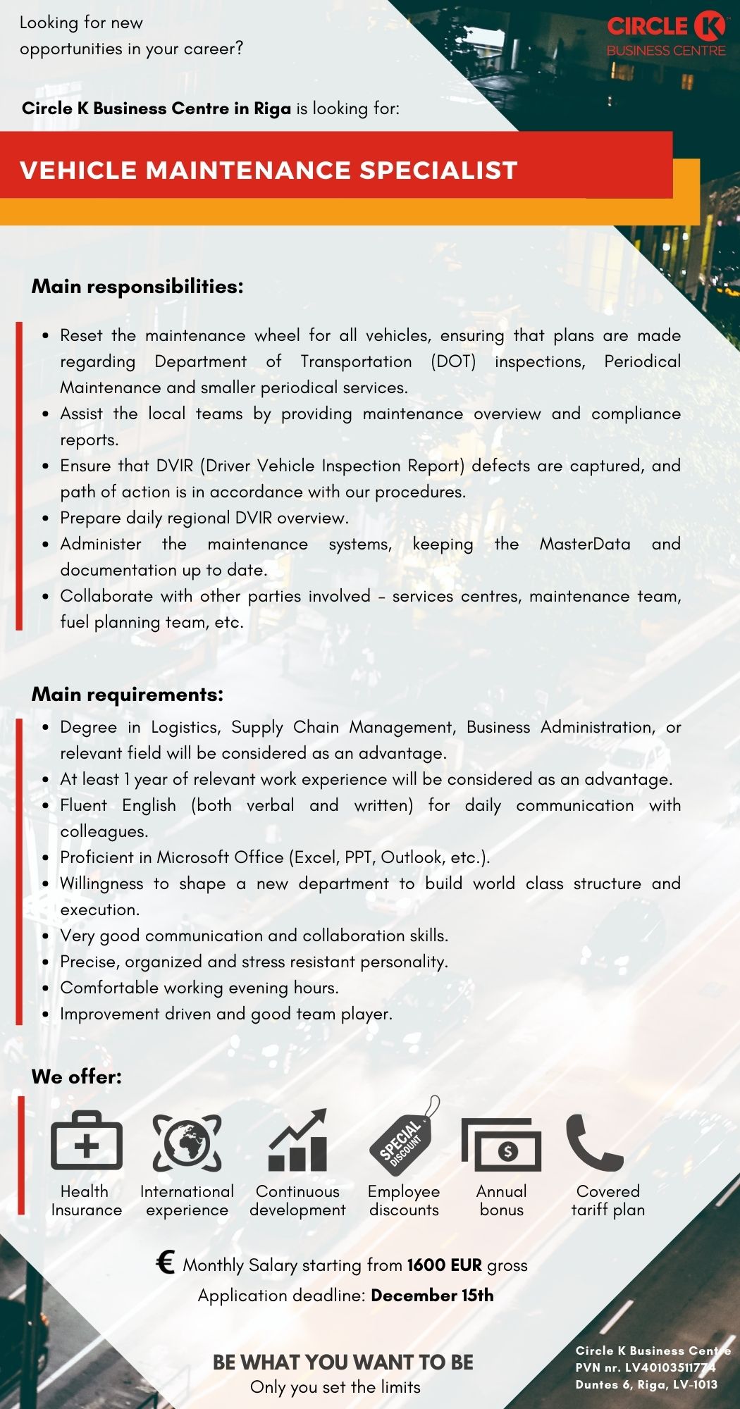 Circle K Business Centre in Riga is one of the biggest support offices in our global Circle K family. Were more than 750 professionals who are providing services in areas of Finance, Logistics, IT, Customer Service & HR. Join our international team!
