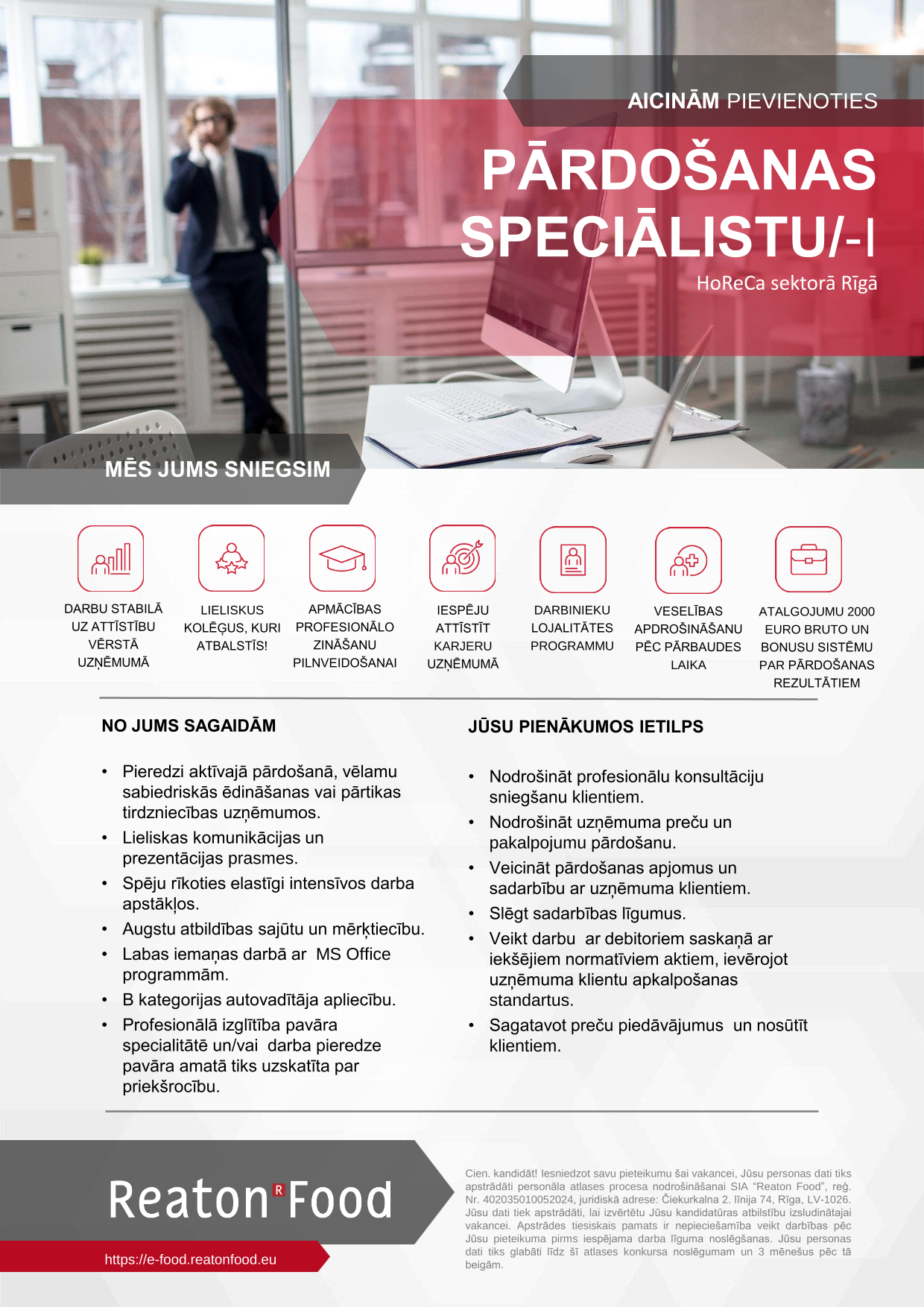Additional information: Atalgojumu 2000 un pēc pārbaudes laika bonusu sistēmu par pārdošanas rezultātiem.