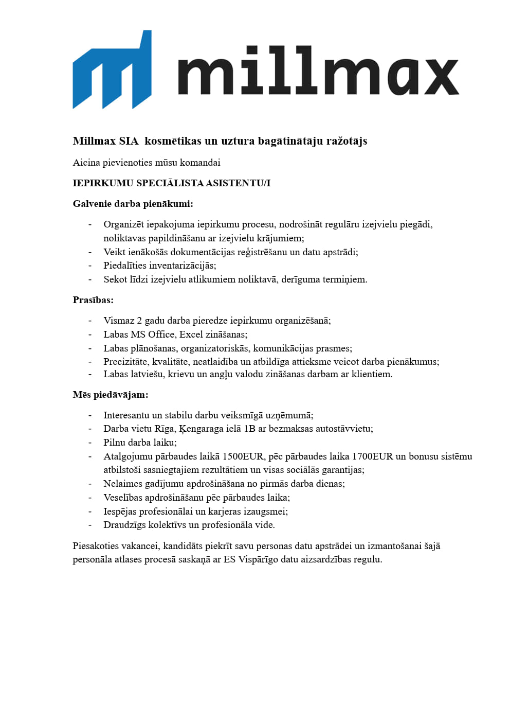 Additional information: Atalgojums pārbaudes laikā 1500 EUR, pēc pārbaudes laika 1700 EUR un bonusu sistēma atbilstoši sasniegtajiem rezultātiem un visas sociālās garantijas;