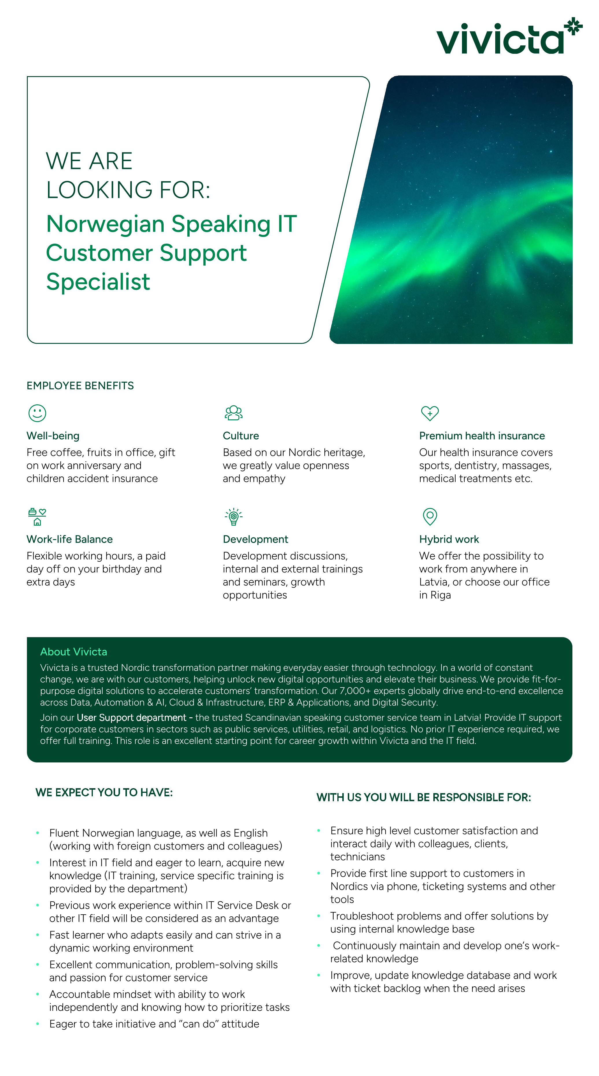 Norvēģu valodā runājošs/-a IT klientu atbalsta specialists/-e