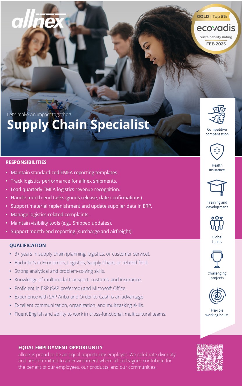 - Minimum 3 years of experience in supply chain functions such as planning, logistics, or customer service.