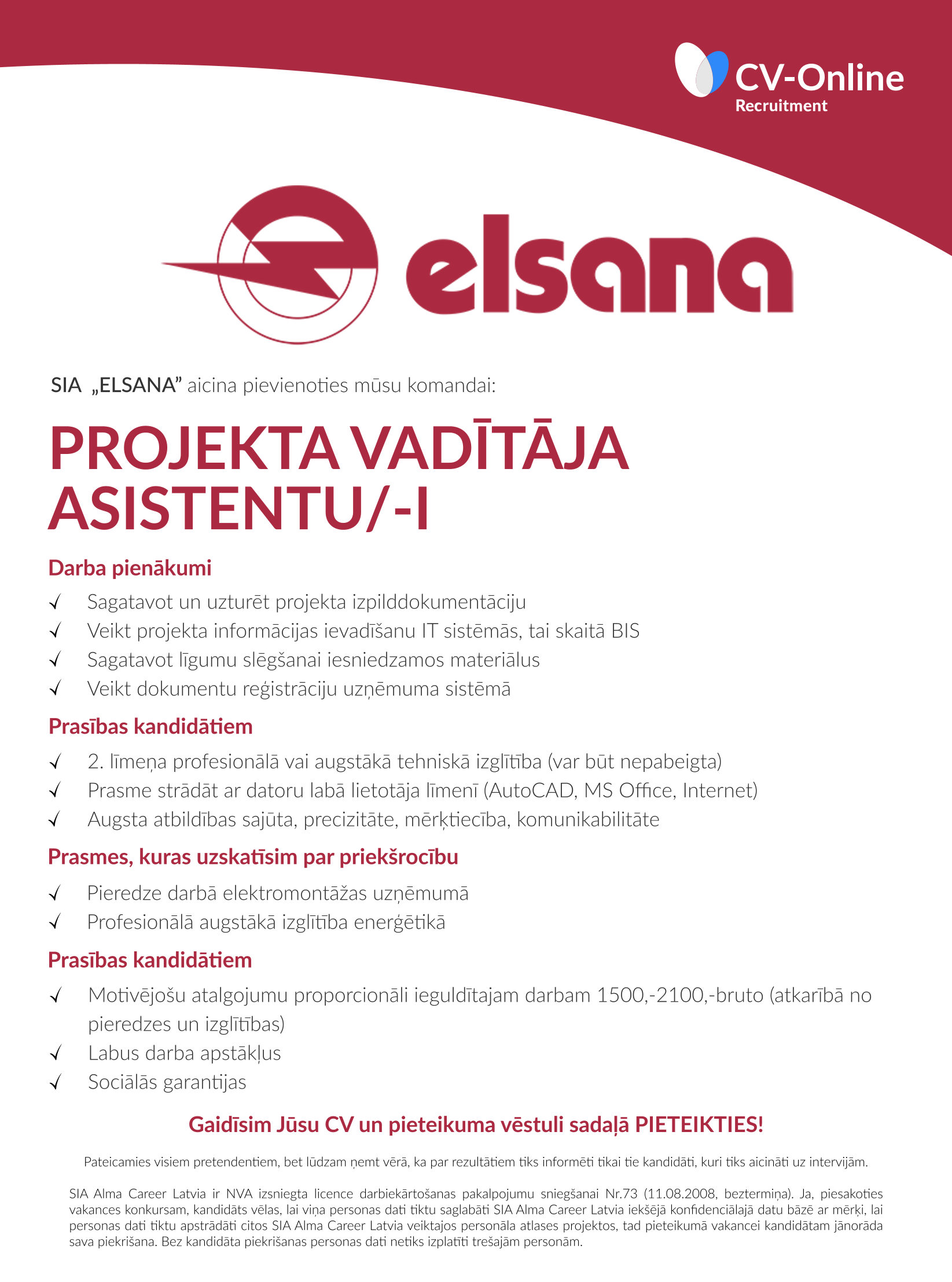Additional information: Motivējošs atalgojums proporcionāli ieguldītajam darbam 1500,-2100,-bruto (atkarībā no pieredzes un izglītības)