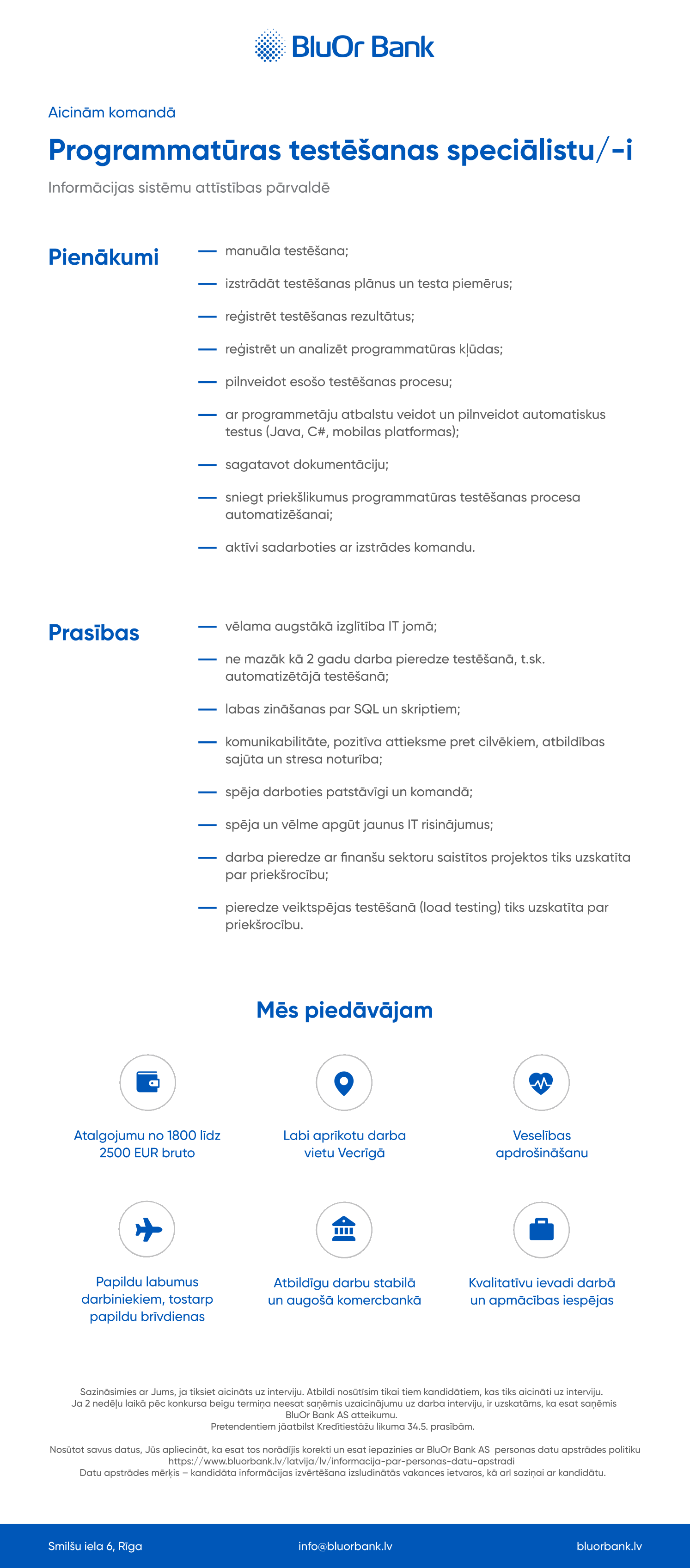 BluOr Банк основан в 2001 году и является современным технологическим банком, предоставляющим финансовые, кредитные и инвестиционные услуги частным клиентам и корпоративным предприятиям в Латвии, странах Балтии и Европы.