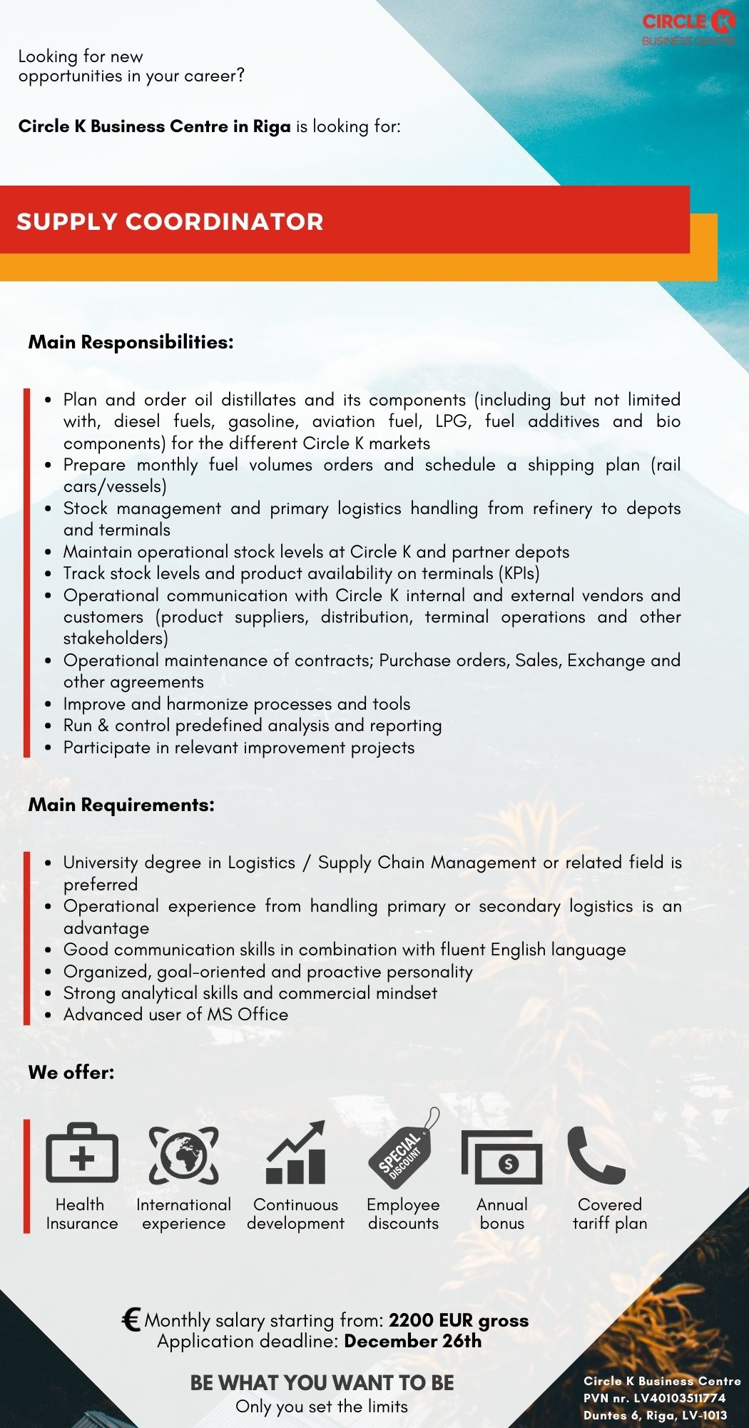 Circle K Business Centre in Riga is one of the biggest support offices in our global Circle K family. Were more than 750 professionals who are providing services in areas of Finance, Logistics, IT, Customer Service & HR. Join our international team!