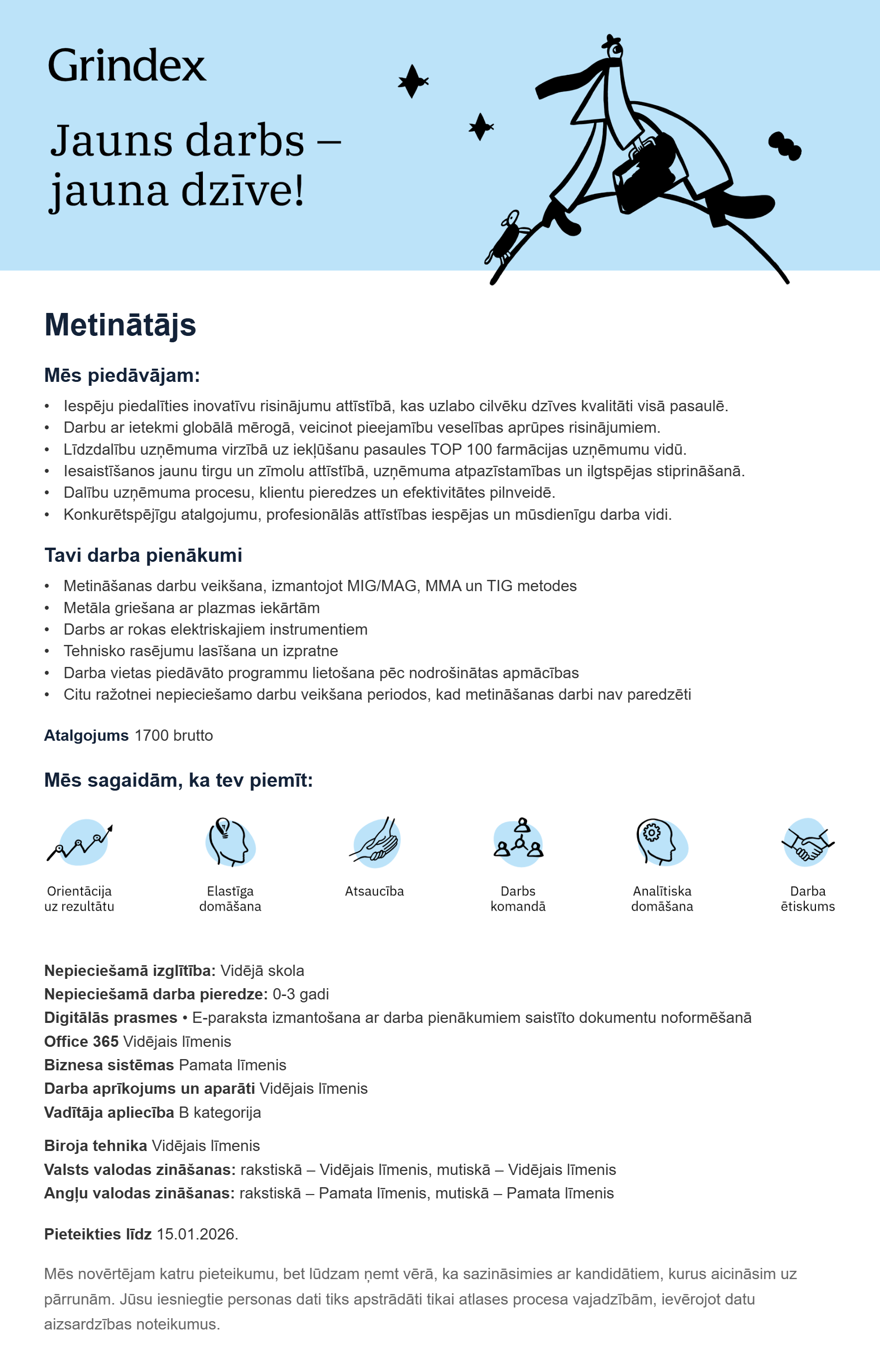 Karjera Grindeks nozīmē dinamisku un mūsdienīgu darba vietu, uz rezultātu orientētu komandu, starptautiskās karjeras attīstības iespējas, kā arī plašu motivācijas un lojalitātes programmu. Katru gadu "Grindeks" ir starp labākajiem darba devējiem Latvijā, 2023. gadā iegūstot 2. vietu ražošanas sektorā.