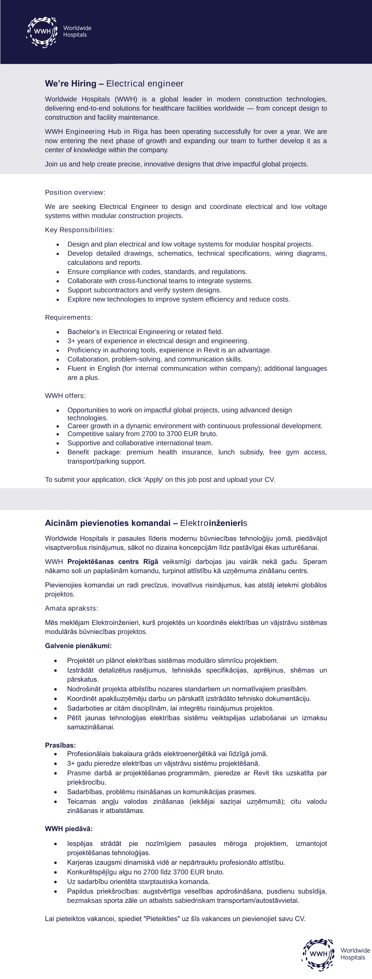 Additional information: Premium health insurance, lunch subsidy, free gym access, transport/parking support