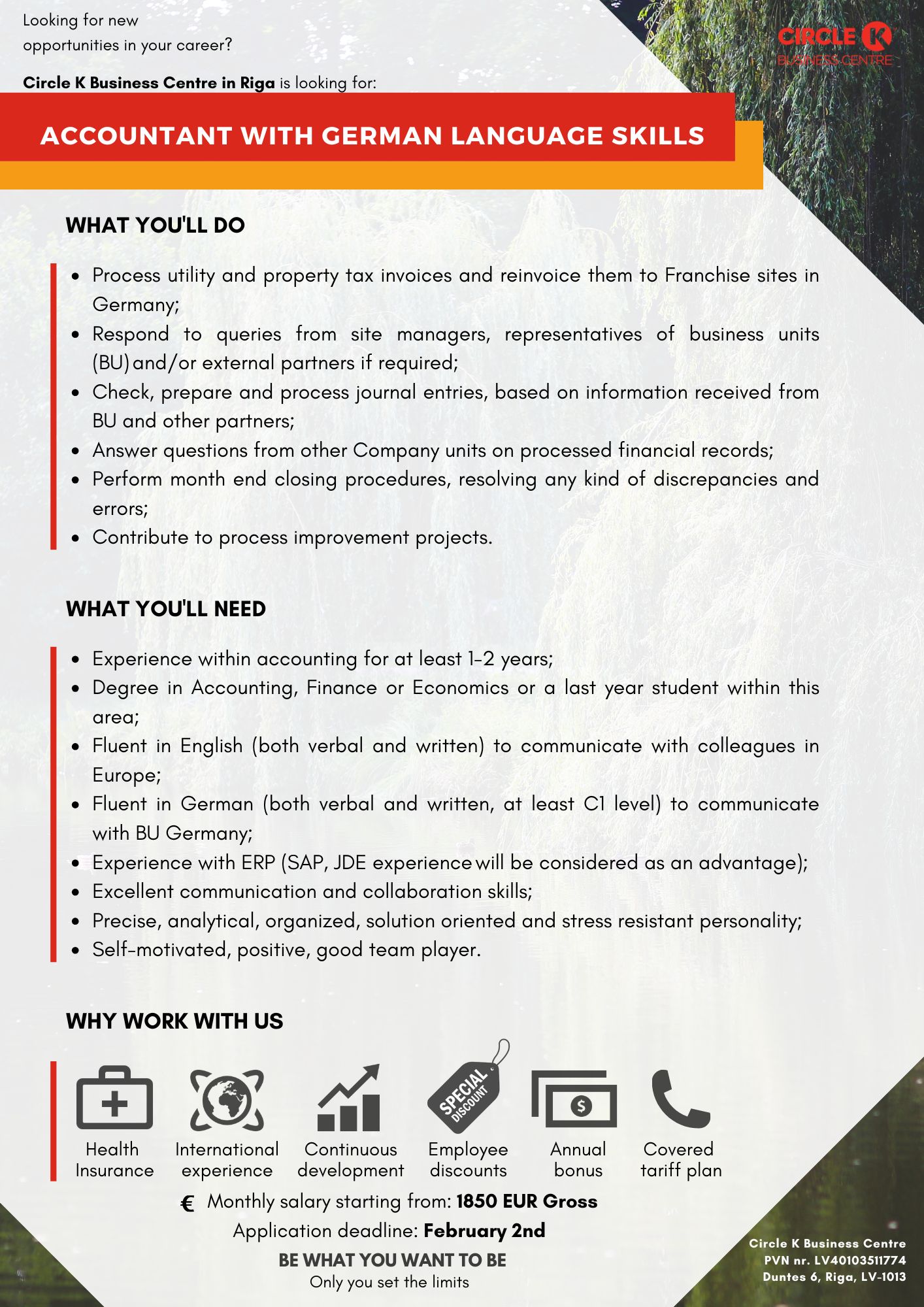 Circle K Business Centre in Riga is one of the biggest support offices in our global Circle K family. Were more than 750 professionals who are providing services in areas of Finance, Logistics, IT, Customer Service & HR. Join our international team!