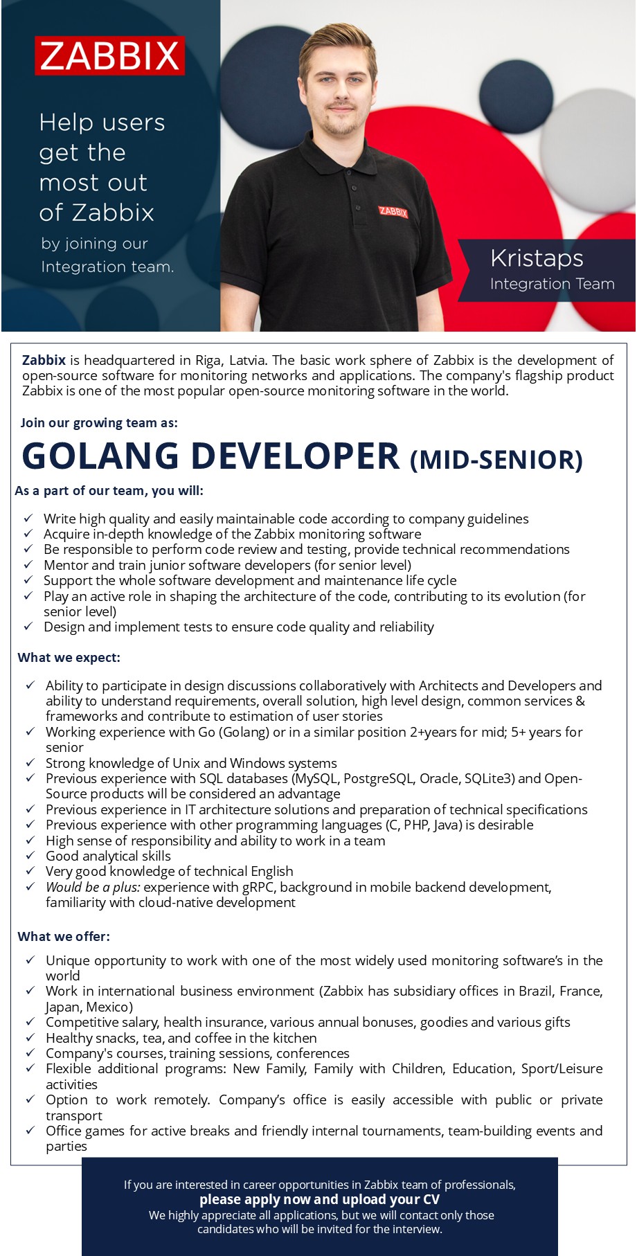Zabbix recruitment policy is available here: