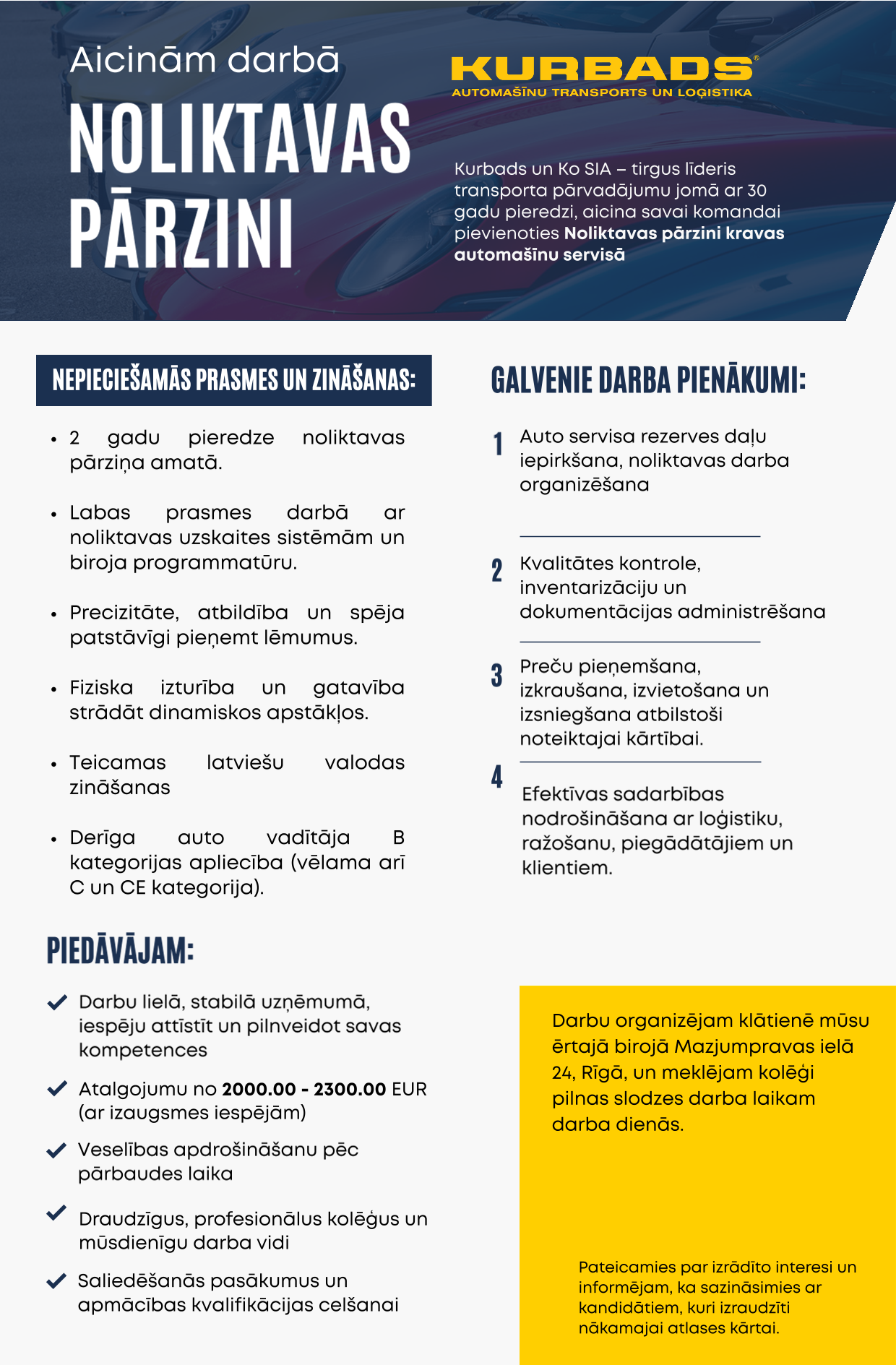 Kurbads un Ko SIA - tirgus līderis, kas vairāk kā 30 gadus darbojas transporta pārvadājumu, un citās autonozares jomās. Uzņēmuma darbības profilu paplašina saistītie grupas uzņēmumi, kas strādā sporta, nekustamo īpažumu pārvaldības un citās nozarēs piesaistot vislabākos profesionāļus spēcīgajai Kurbads un Ko komandai.