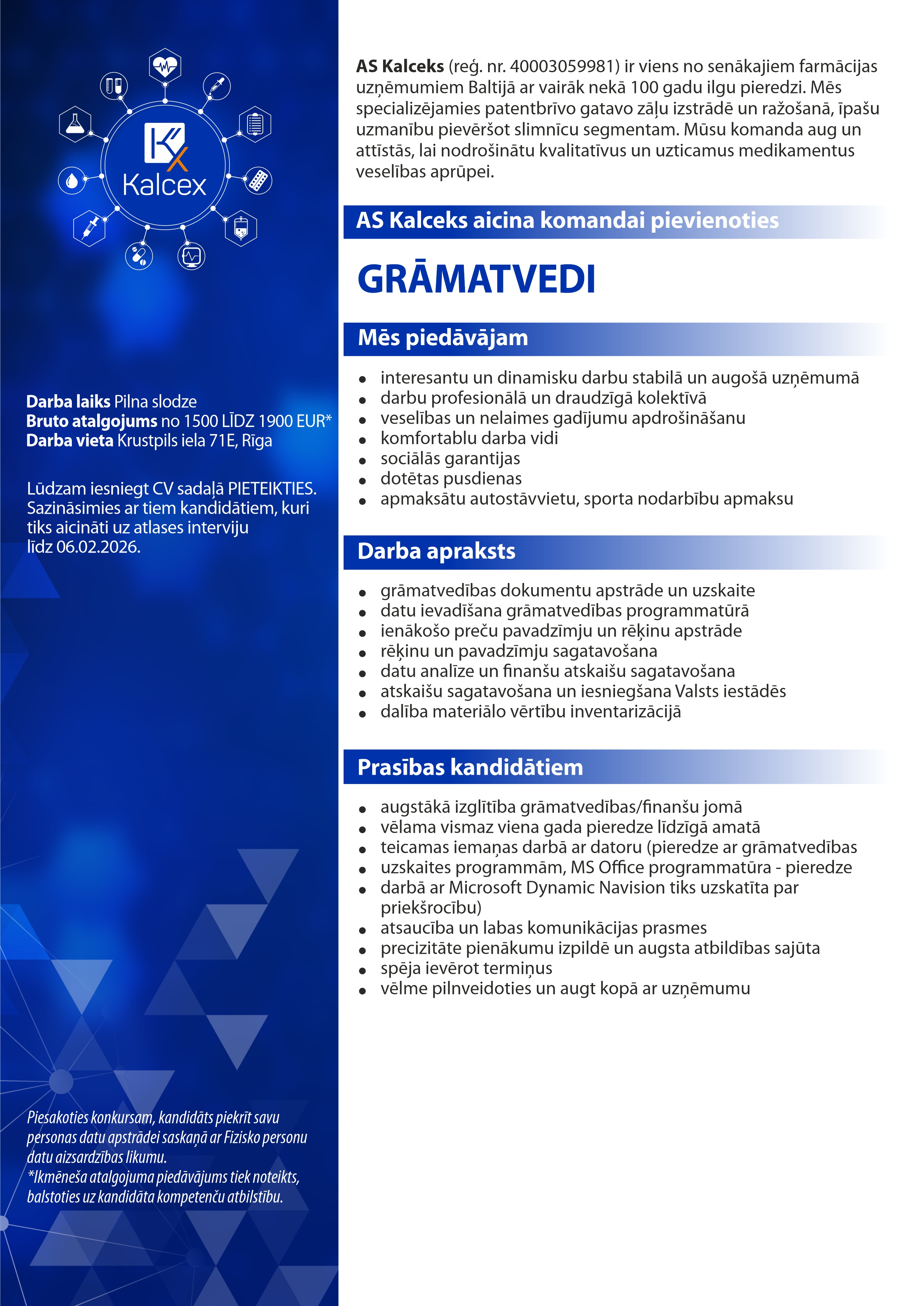 Additional information: ikmēneša atalgojuma piedāvājums tiek noteikts balstoties uz kandidāta kompetenču atbilstību.