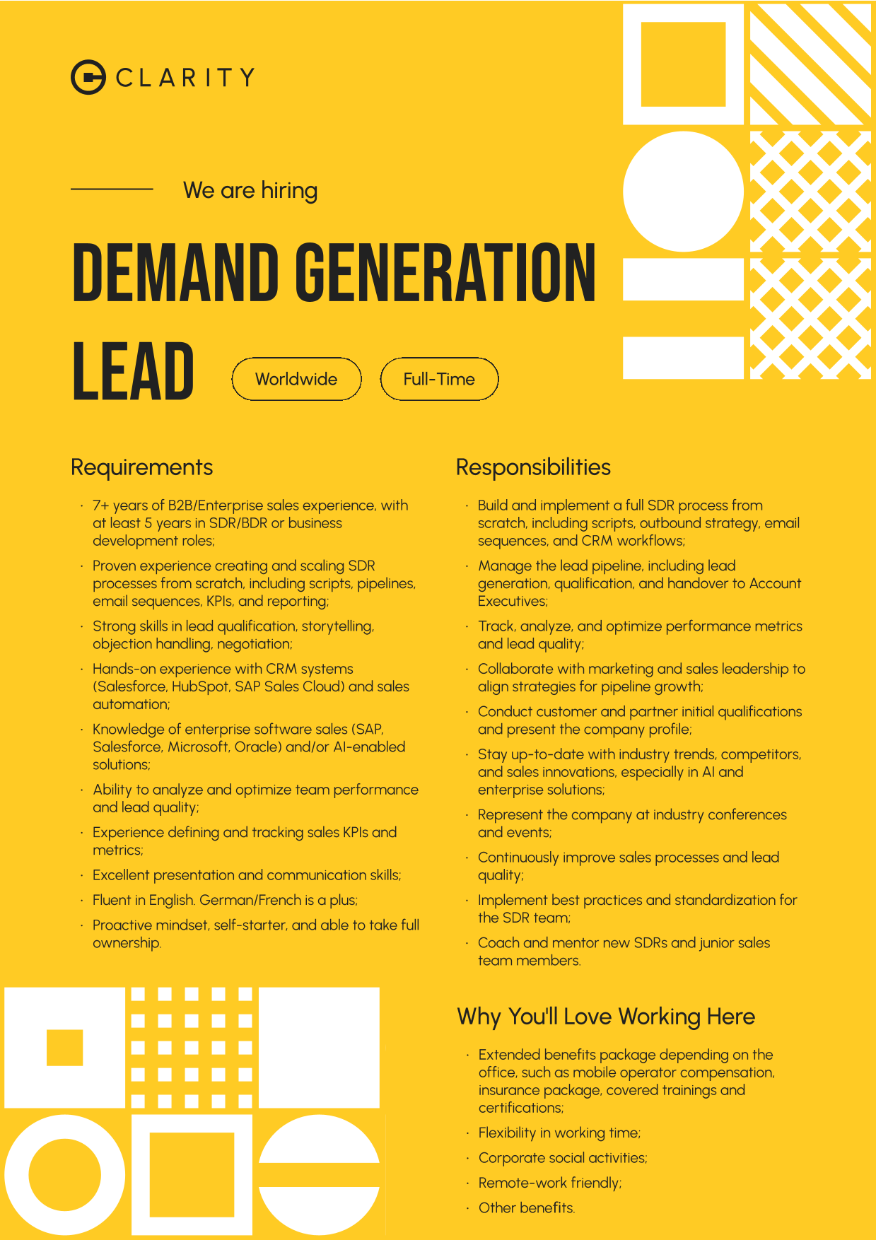 At Clarity Labs, our purpose is to help businesses around the world become more successful by better planning, implementing and running their SAP Customer Experience projects. As an SAP partner, we’re committed to leveraging the power of SAP C/4 Hana to make every client’s customer transformation journey a long-lasting success.