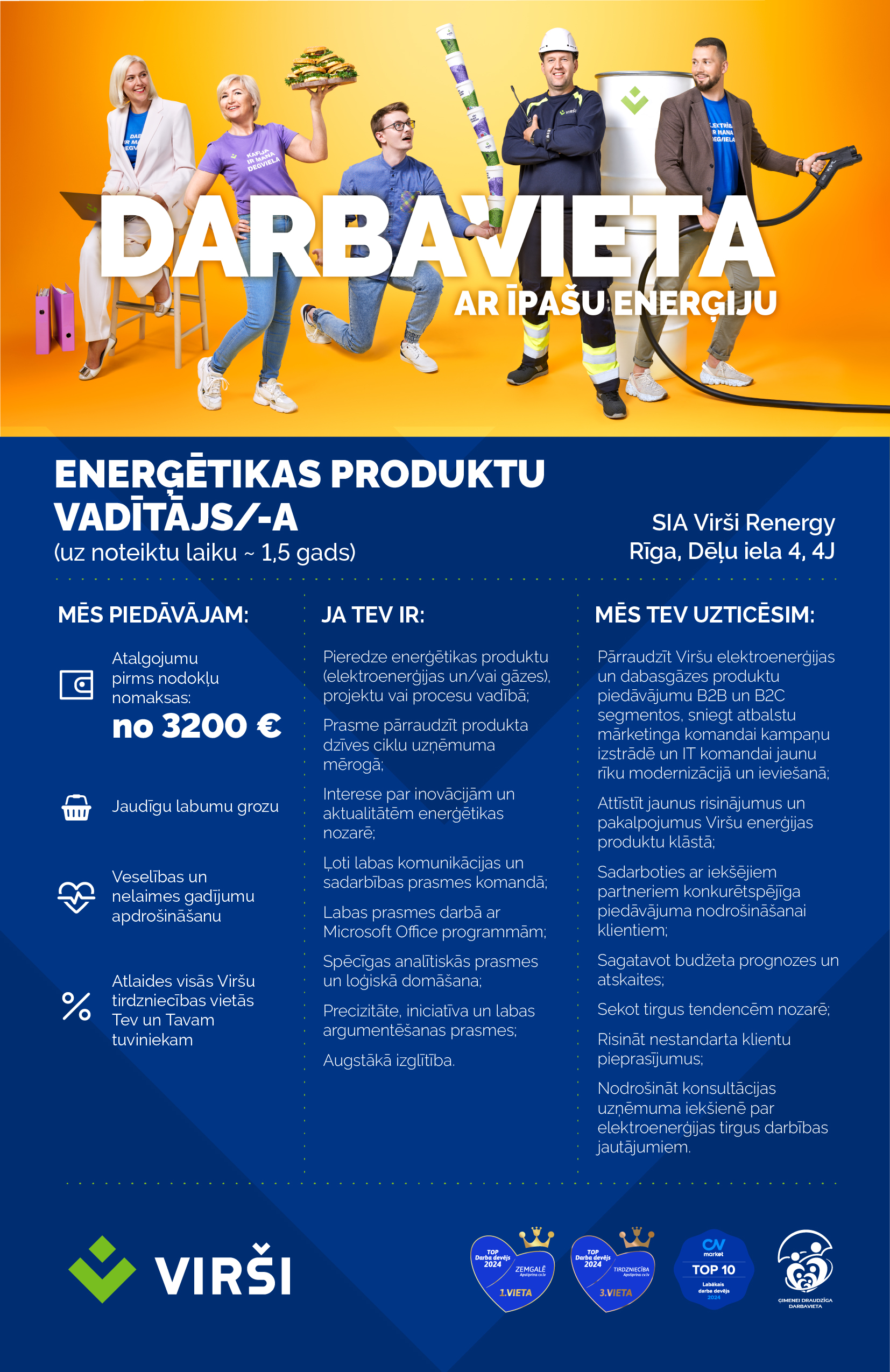 Strādājot Viršos, īpaša enerģija jūtama ik uz soļa. To veido mūsu zinošo vadītāju un jaudīgo komandu darītprieks! Šeit ir atbalstoša vide un ikviens zina savus darba uzdevumus. Virši ir strauji augošs energoresursu tirgotājs un ērtas iepirkšanās veikalu tīkls ar 31 gada pieredzi. Šobrīd "Virši" tīklā ir 84 degvielas uzpildes stacijas un tajās strādā vairāk nekā 900 darbinieki. Kopš 2021. gada 11. novembra AS VIRŠI-A akcijas ir iekļautas Nasdaq Riga biržas alternatīvajā tirgū First North. Pievienojies darītājiem visā Latvijā un pārliecinies, ka Virši ir darbavieta ar īpašu enerģiju.